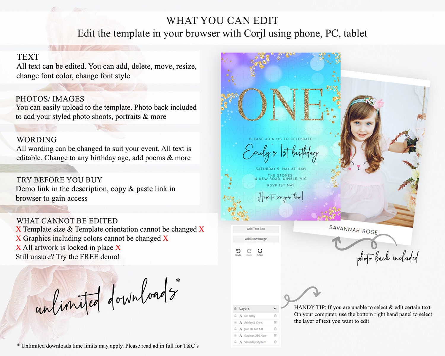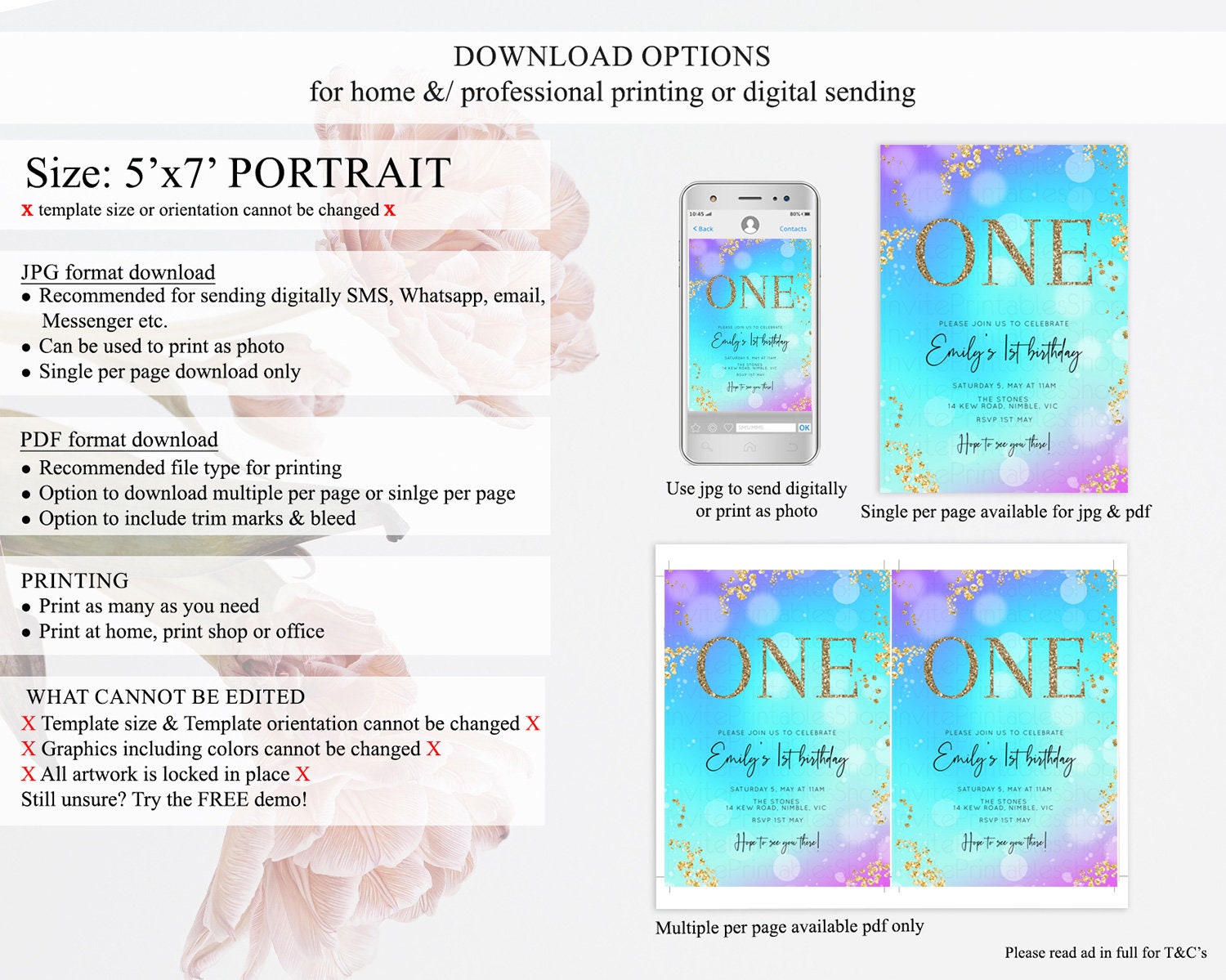 Mermaid Birthday Invitation Mermaid Invitation Rainbow Fish Under The Sea Colorful Pastel Mermaid Pool Party 2nd 1st First Birthday D10573