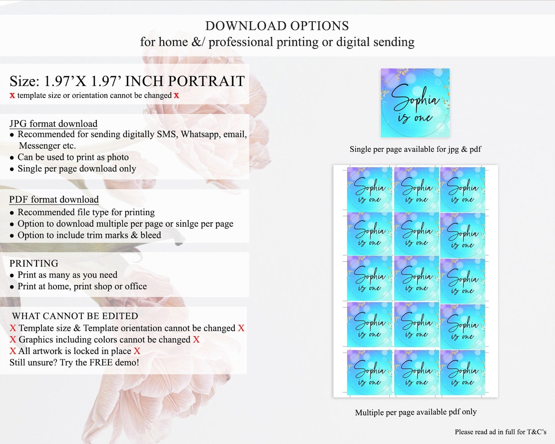 • Template size & orientation cannot be changed. Please use the demo link to confirm this product suits your needs.