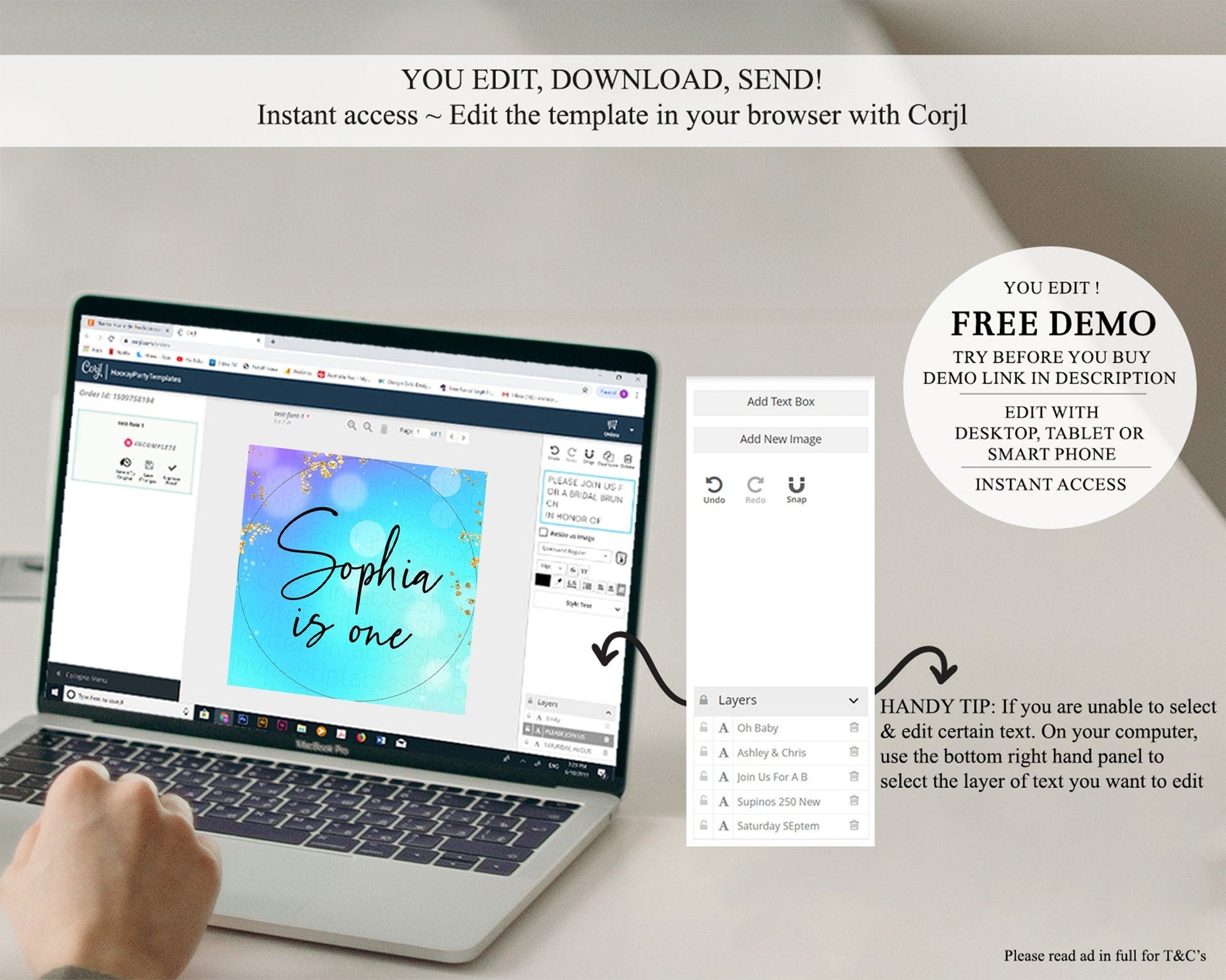 • After purchase, Corjl emails your editing link. Allow up to 15 minutes for delivery.