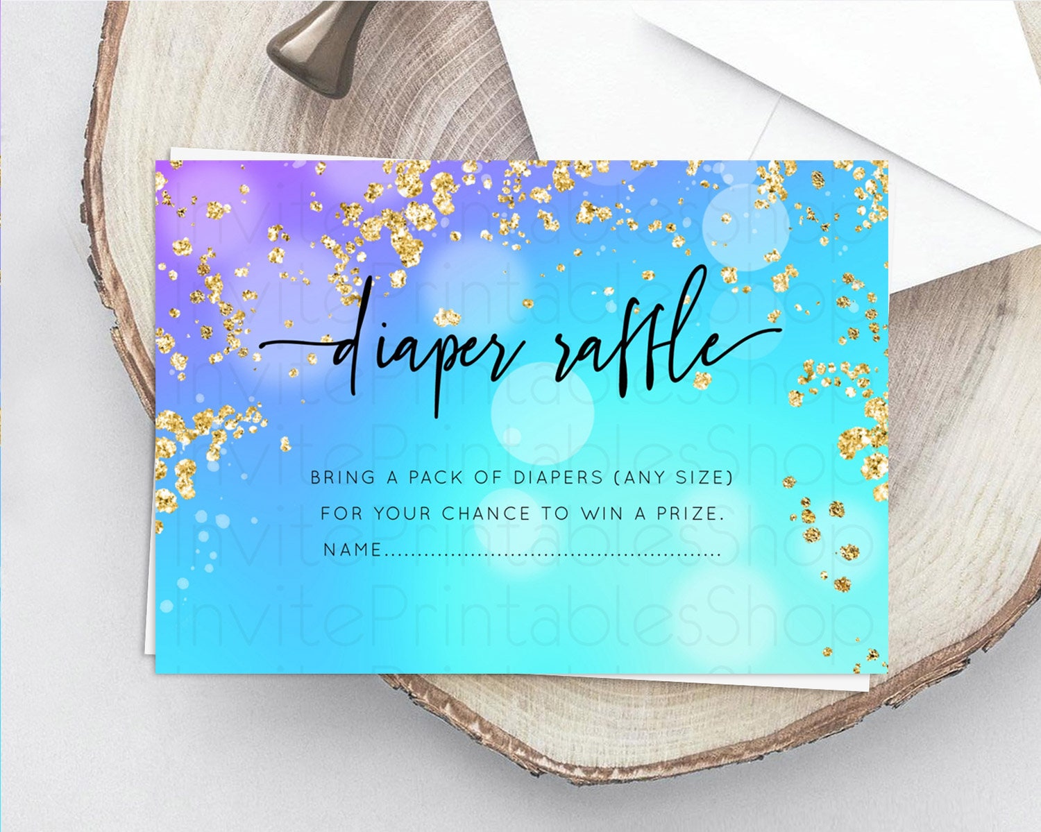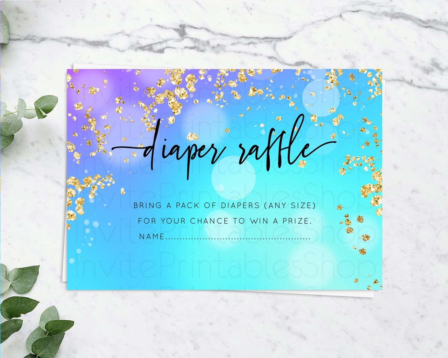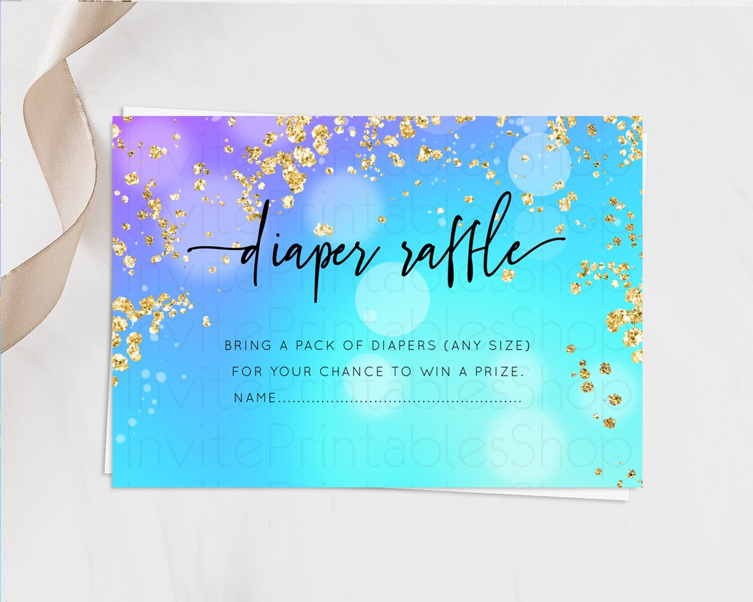 Mermaid Diaper Raffle Card Pastel Mermaid Diaper Raffle Insert Rainbow Fish Diaper Ticket Colorful Under Sea Baby Shower Raffle Game D10573