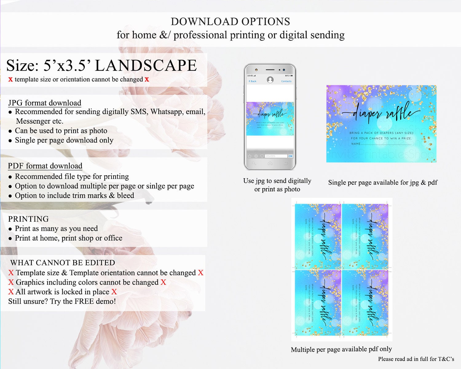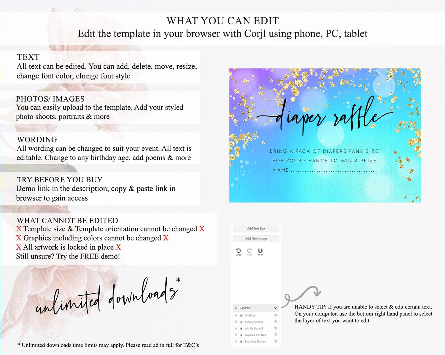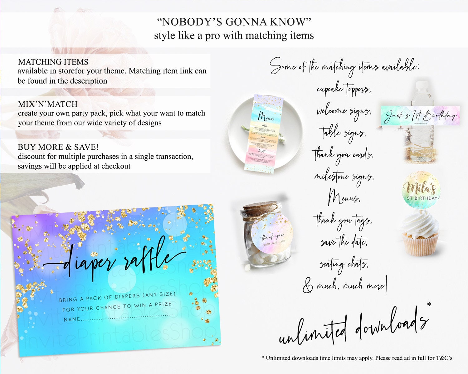 Mermaid Diaper Raffle Card Pastel Mermaid Diaper Raffle Insert Rainbow Fish Diaper Ticket Colorful Under Sea Baby Shower Raffle Game D10573