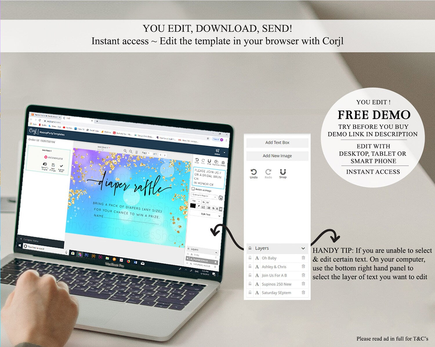 • After purchase, Corjl emails your editing link. Allow up to 15 minutes for delivery.
