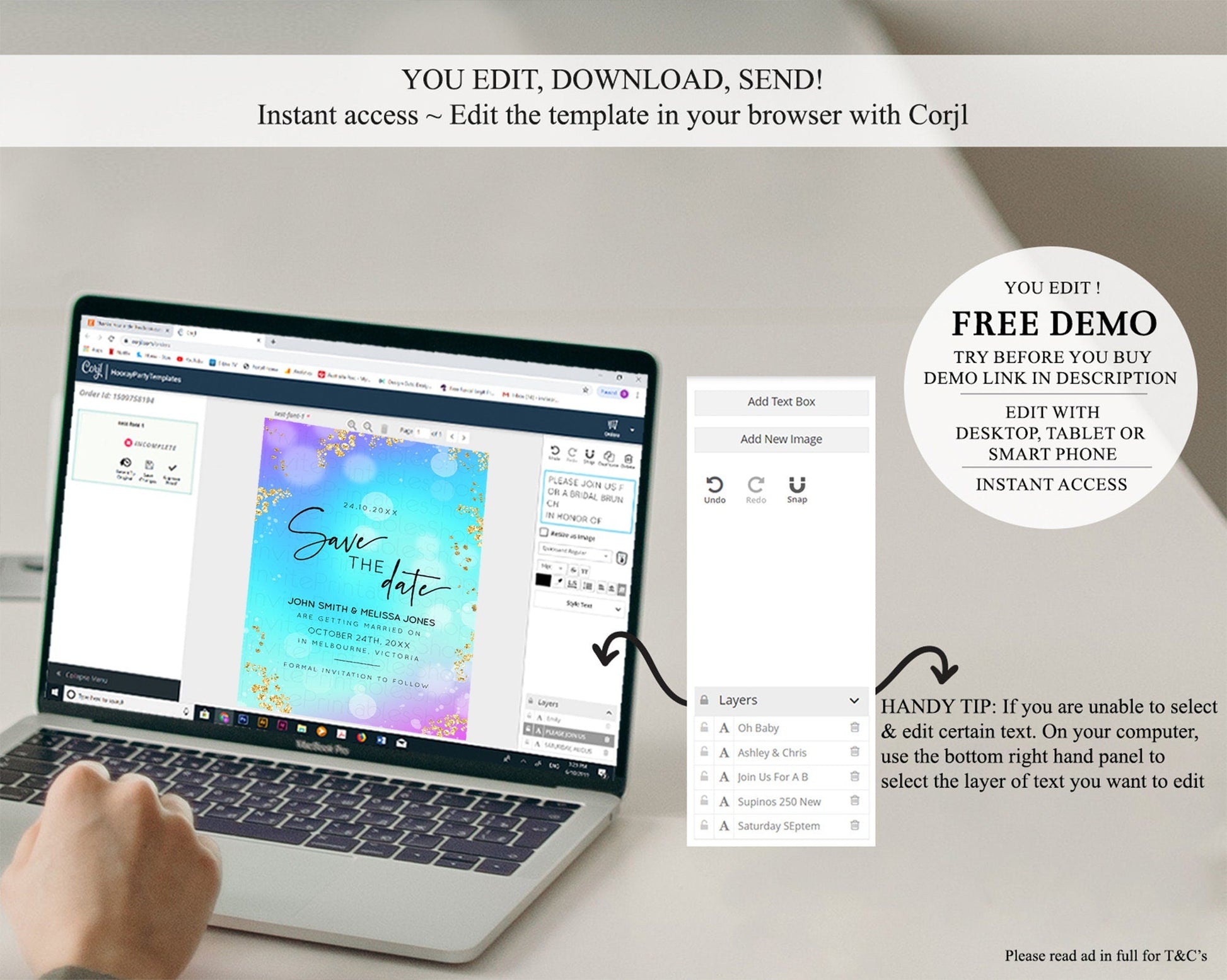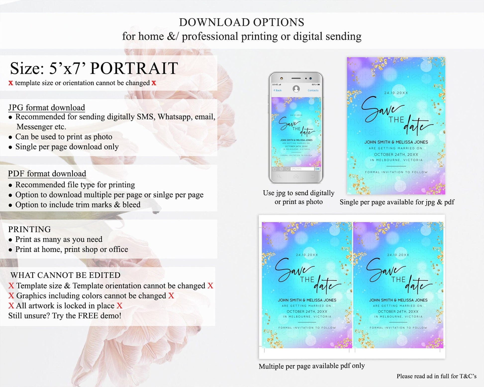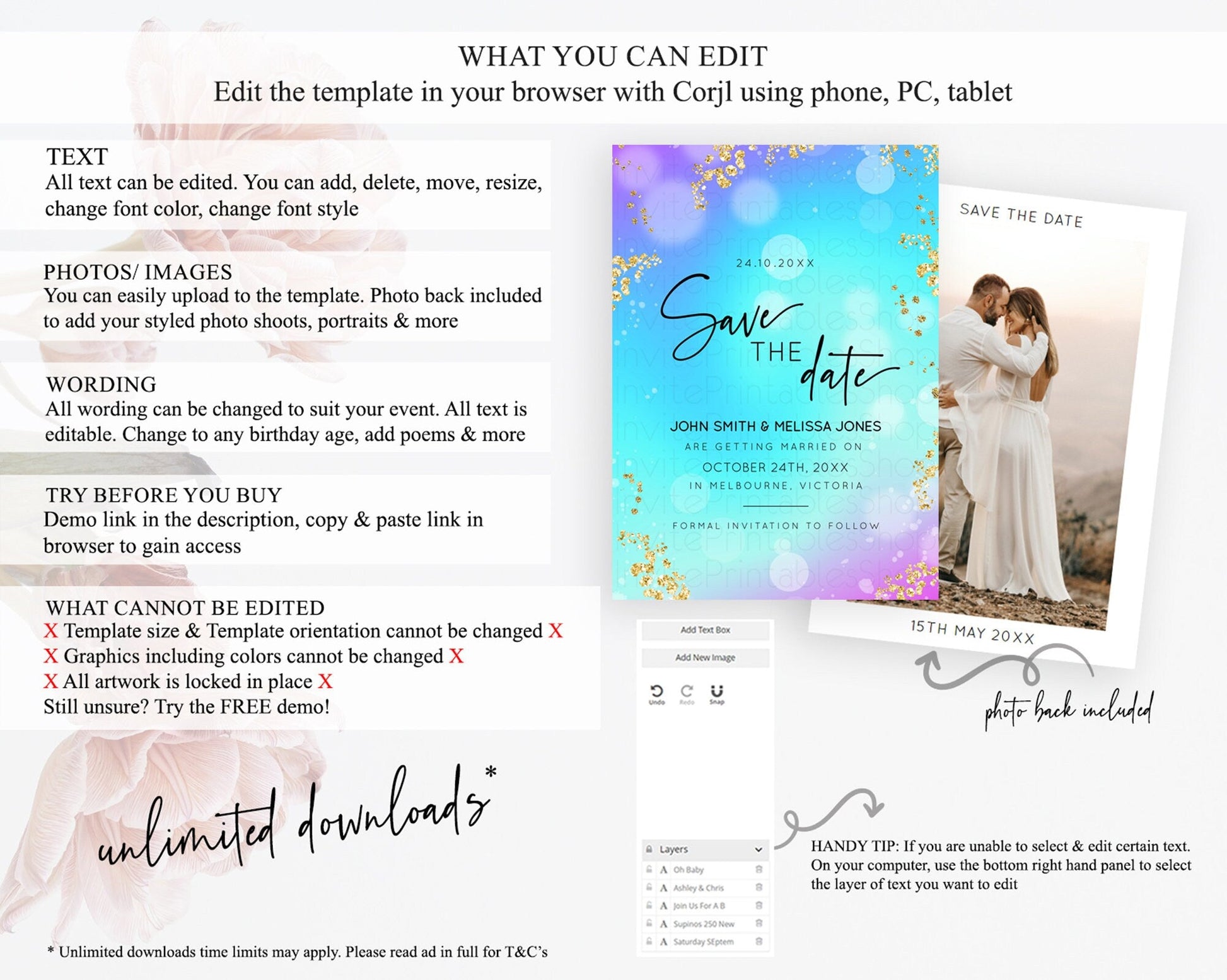Mermaid Save The Date Template Colorful Pastel Mermaid Under The Sea Pool Party For 1st Birthday Baptism Baby Shower Bridal Shower D10573