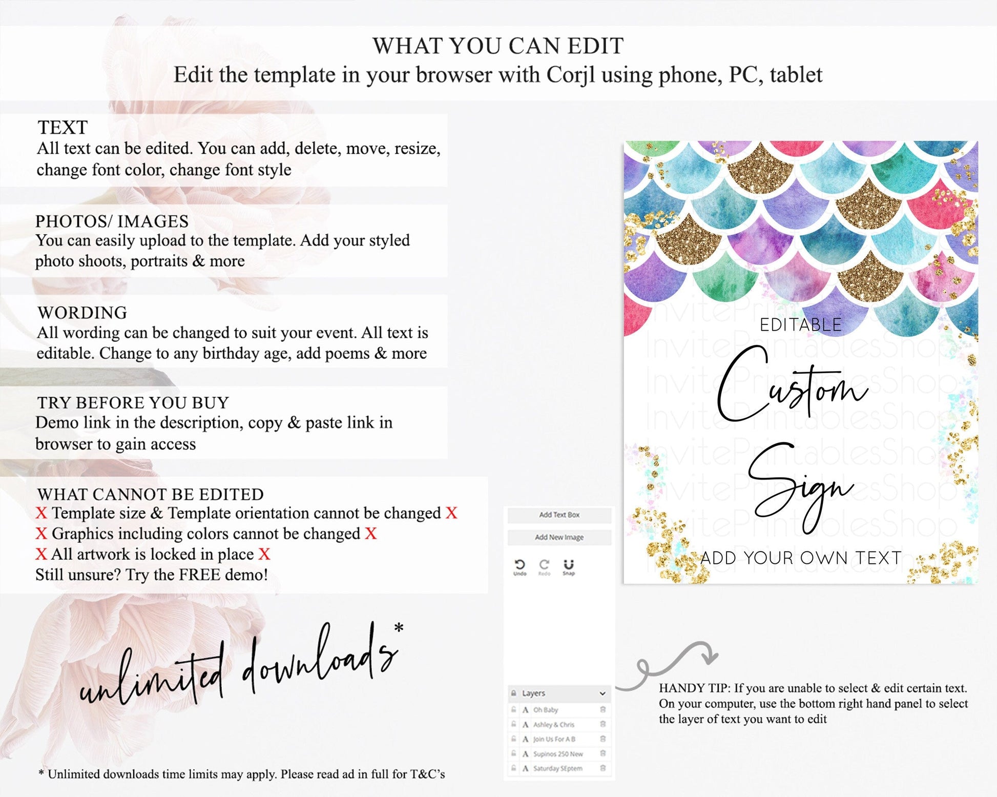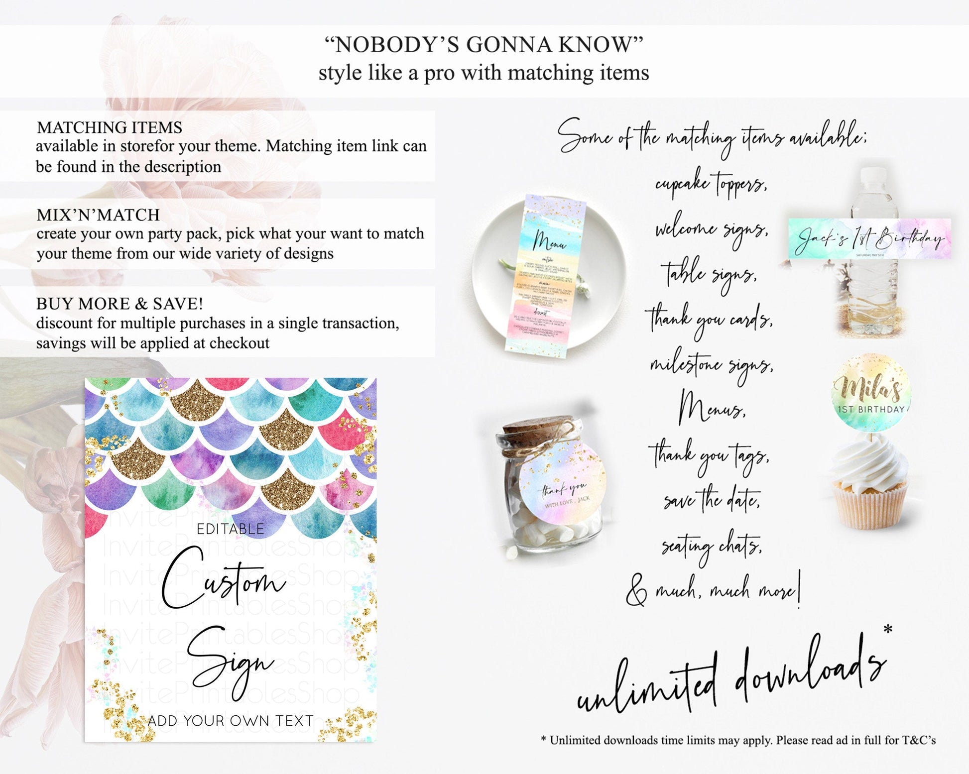Mermaid Sign Sea Table Sign Decor Colorful Pastel Mermaid Under The Sea Pool Party 1st Birthday Baptism Baby Shower Bridal Shower D10581