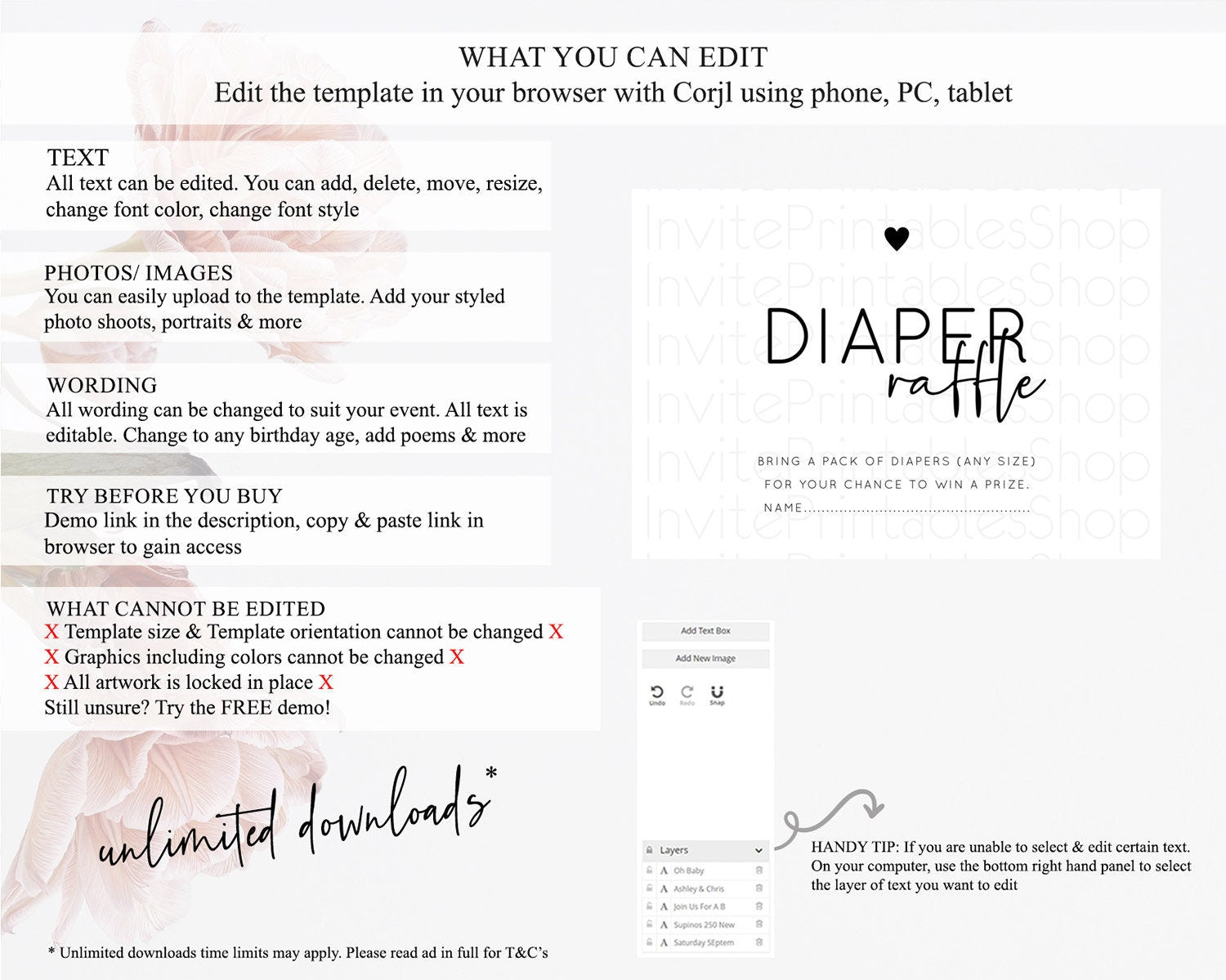 • After purchase, Corjl emails your editing link. Allow up to 15 minutes for delivery.