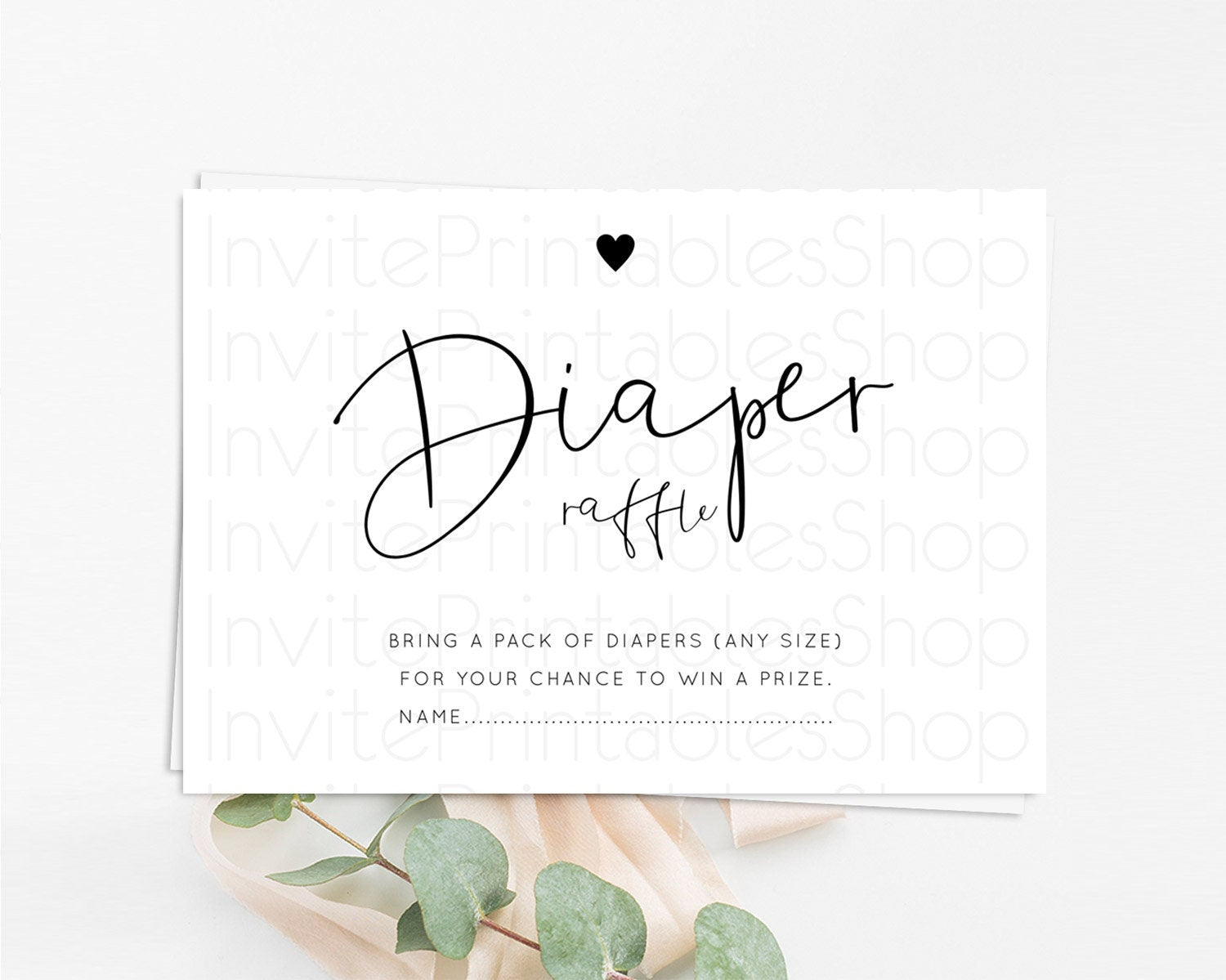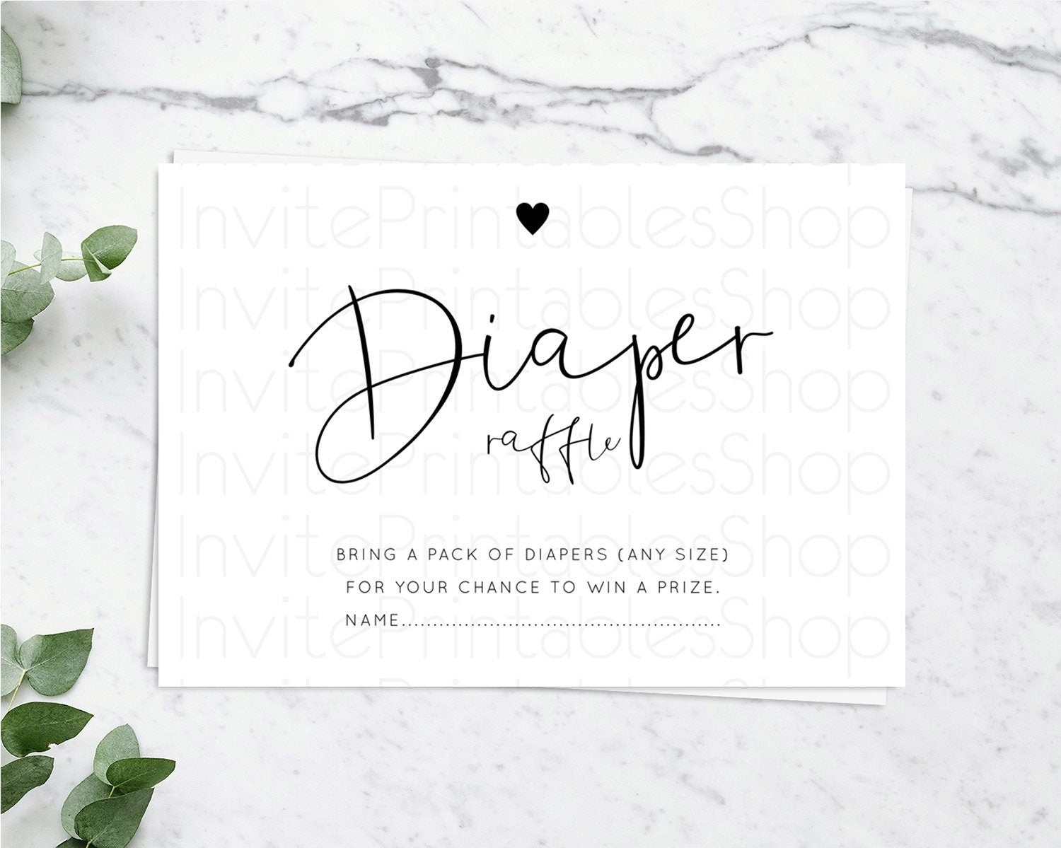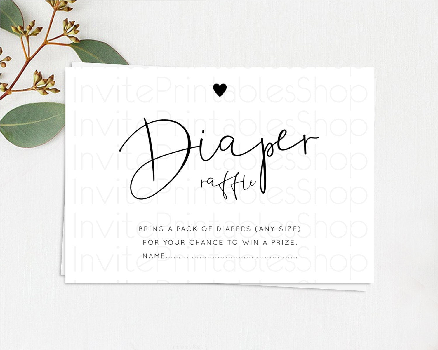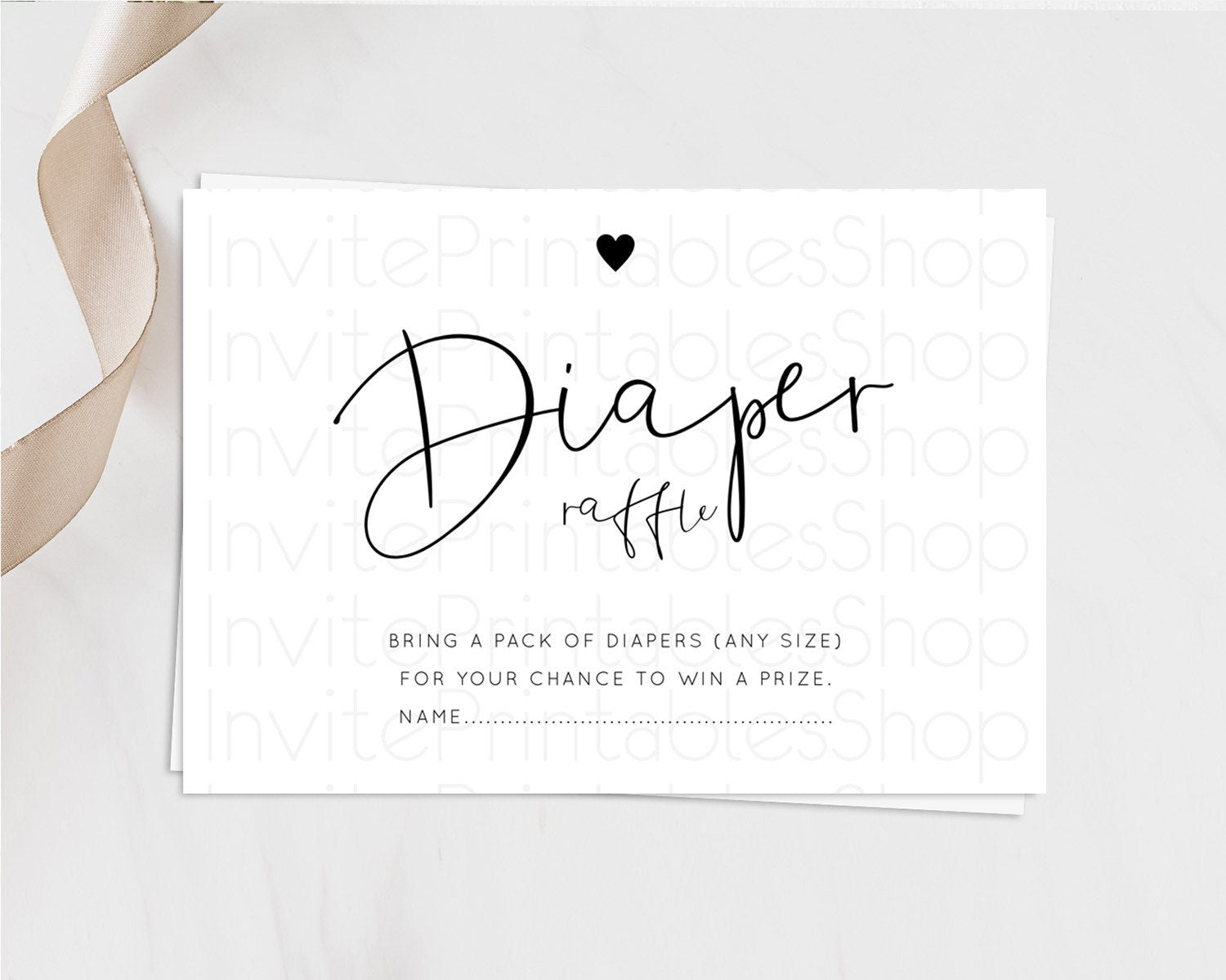 Minimalist Baby Shower Diaper Raffle Insert Simple White Diaper Raffle Insert Minimal White Diaper Ticket Modern White Raffle Game D11013