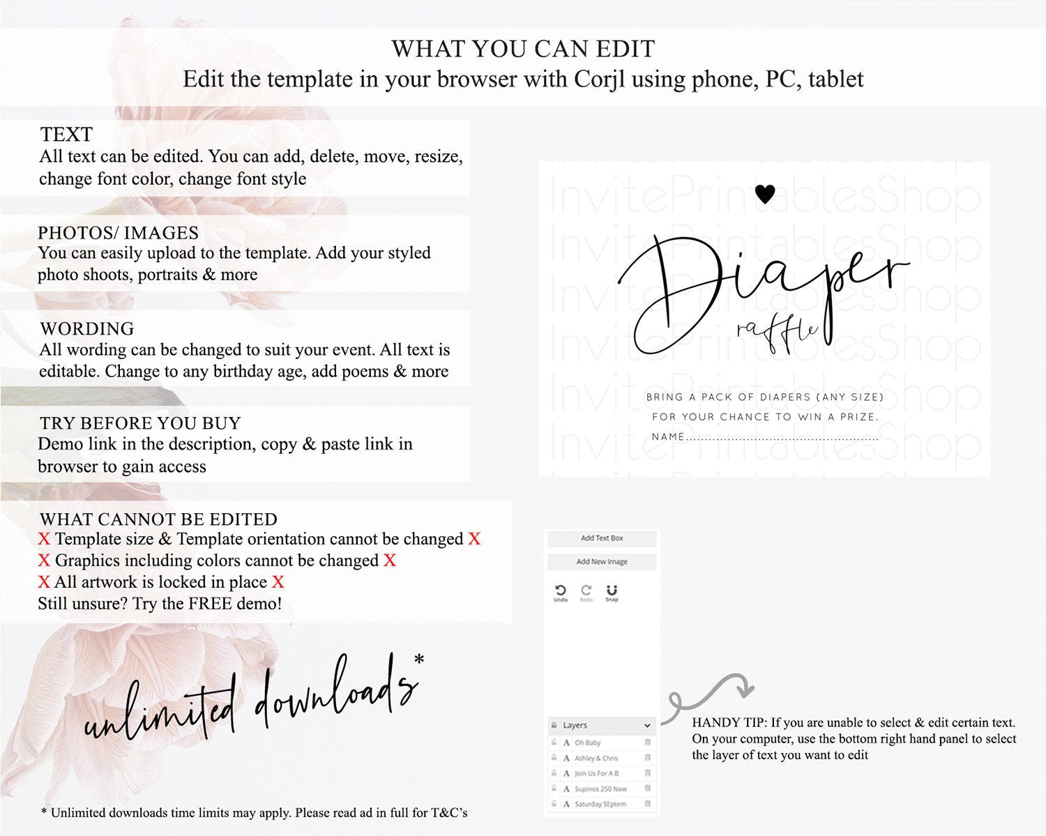 • After purchase, Corjl emails your editing link. Allow up to 15 minutes for delivery.