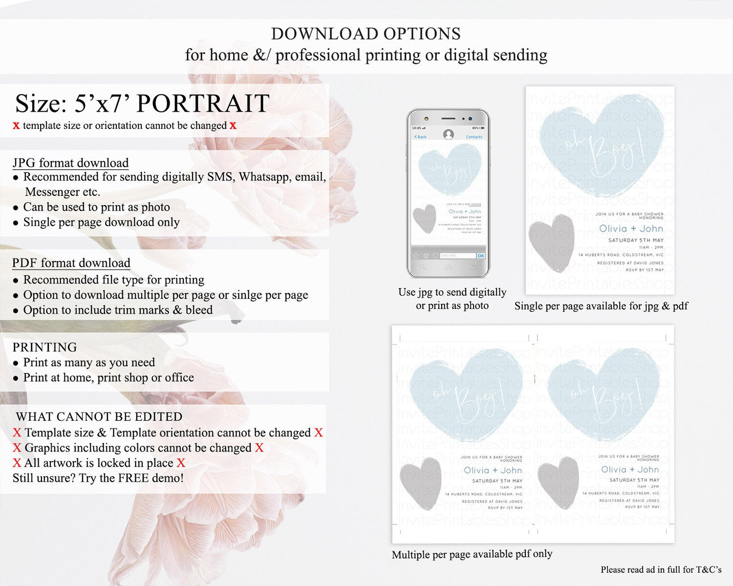 • Template size & orientation cannot be changed. Please use the demo link to confirm this product suits your needs.