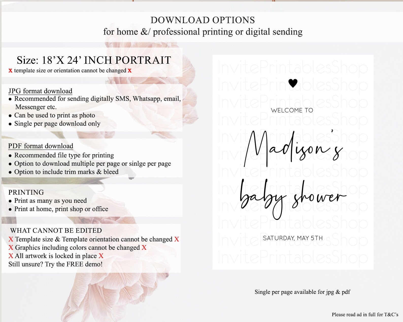 • Template size & orientation cannot be changed. Please use the demo link to confirm this product suits your needs.