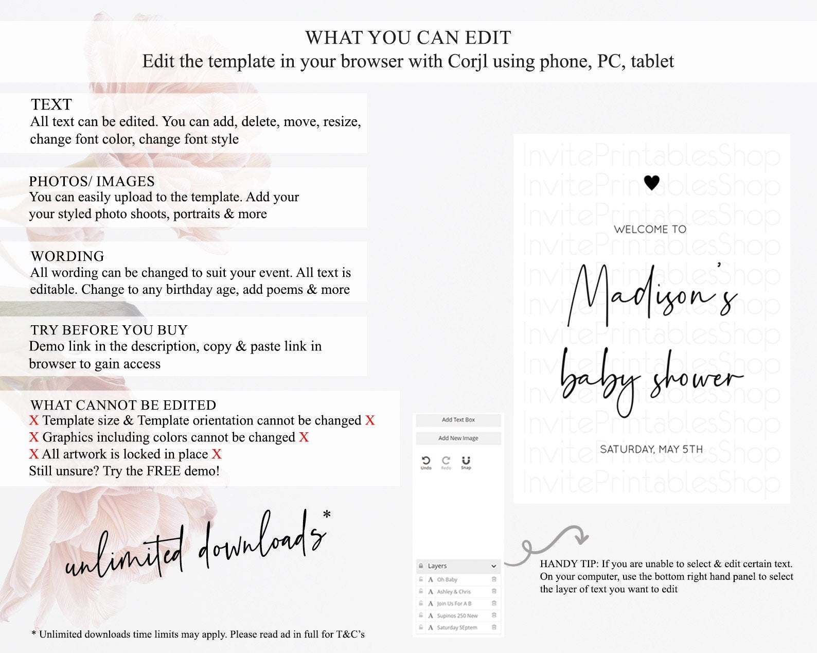 • After purchase, Corjl emails your editing link. Allow up to 15 minutes for delivery.