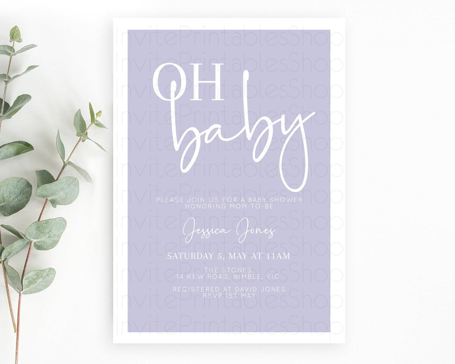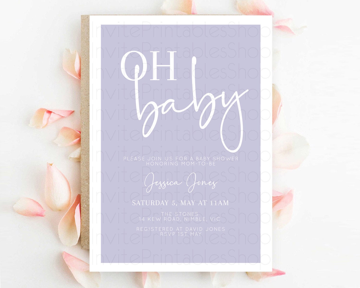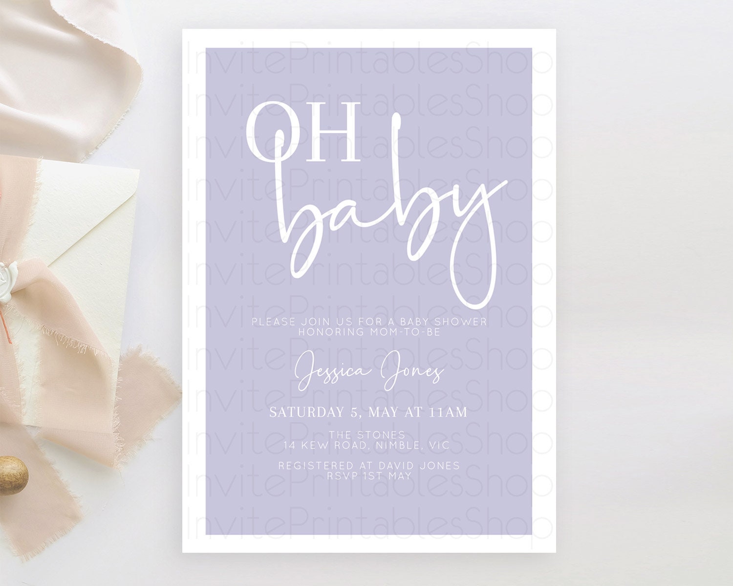 Minimalist Purple Baby Shower Invitation, Purple Invitation, It's a Girl, Modern, Simple Pastel Purple Invitation Stylish Celebration D10942