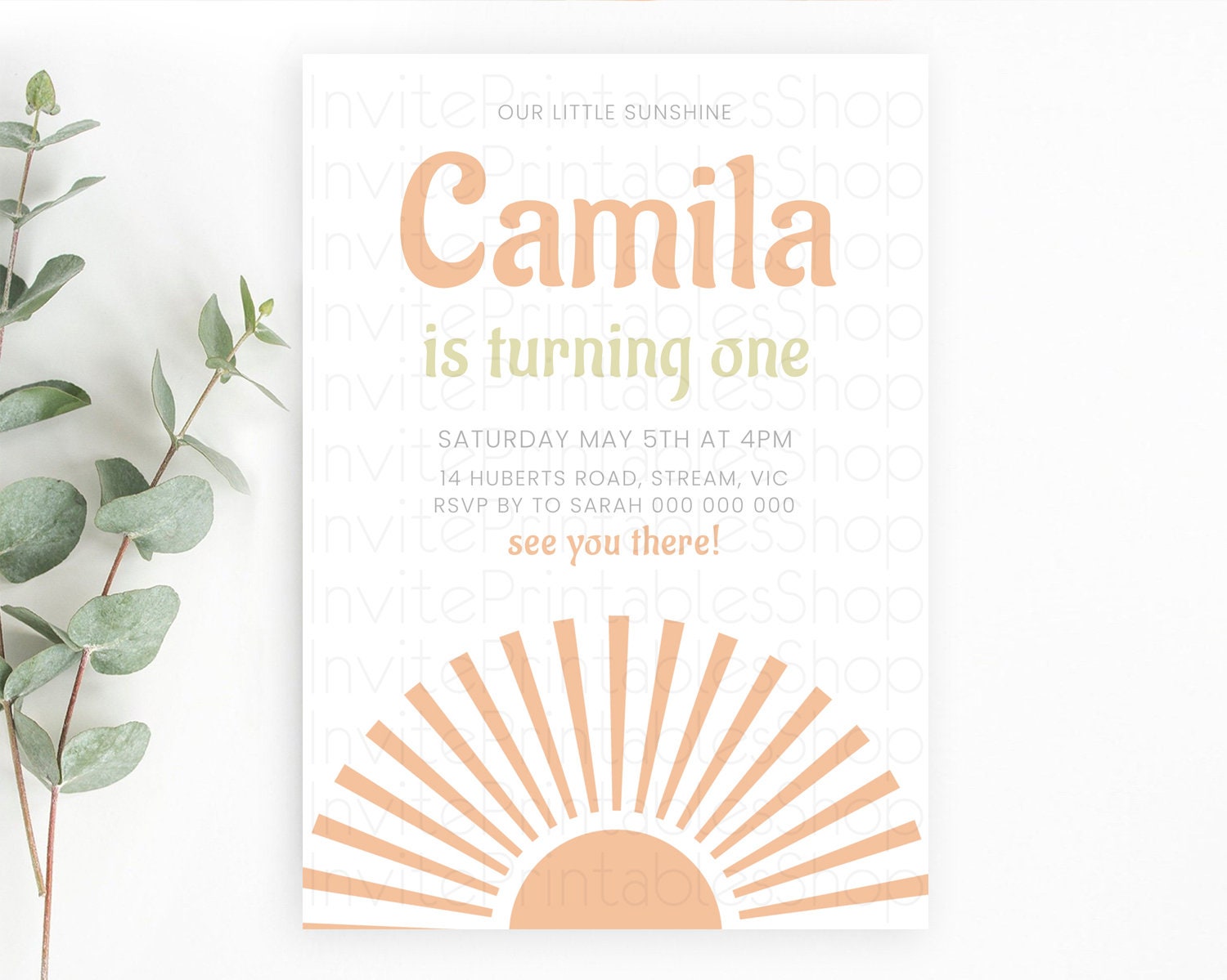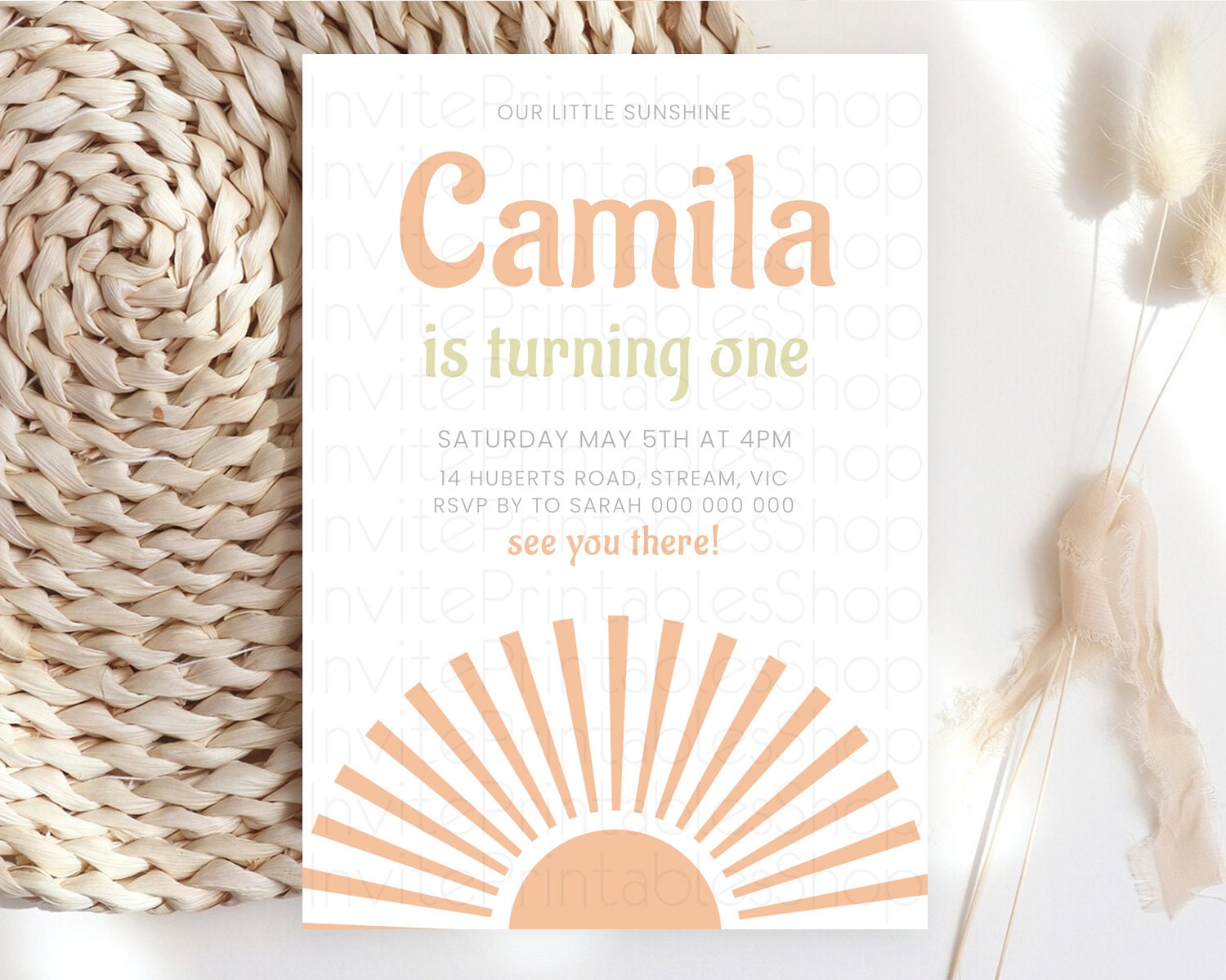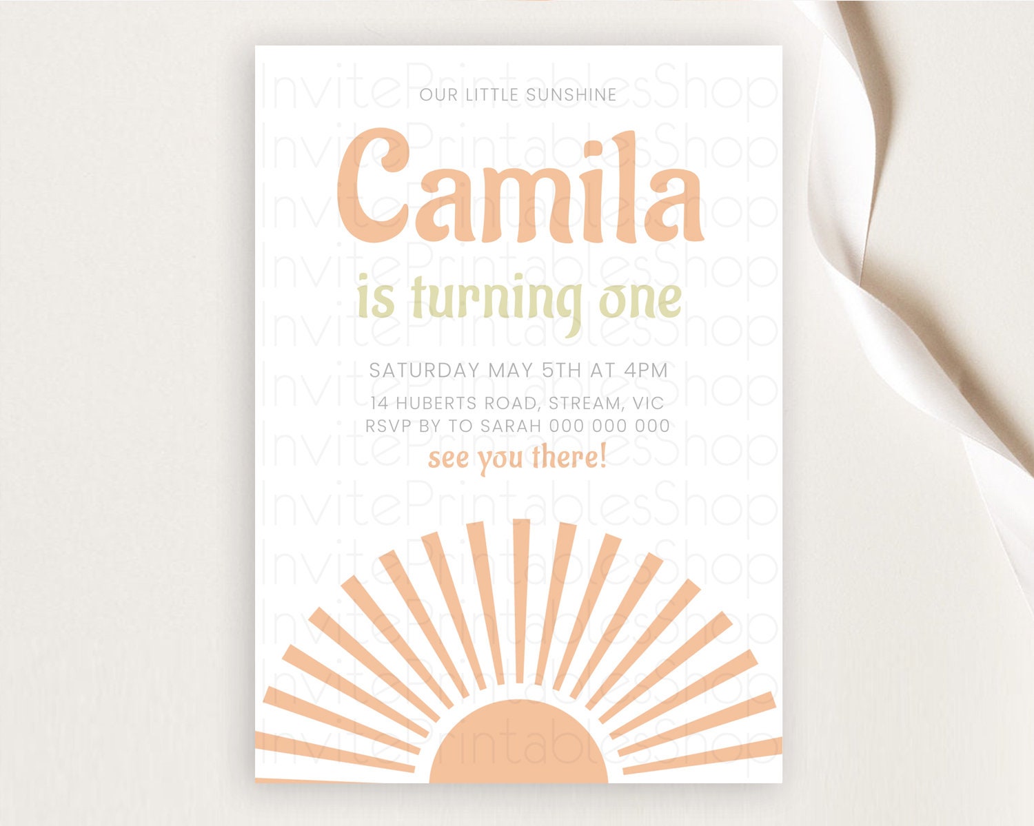 Miss Sunshine Invitation Little Sunshine Birthday Invitation Sun Invitation 1st Year Around Sun Boho Sun Party First Birthday Card 100202