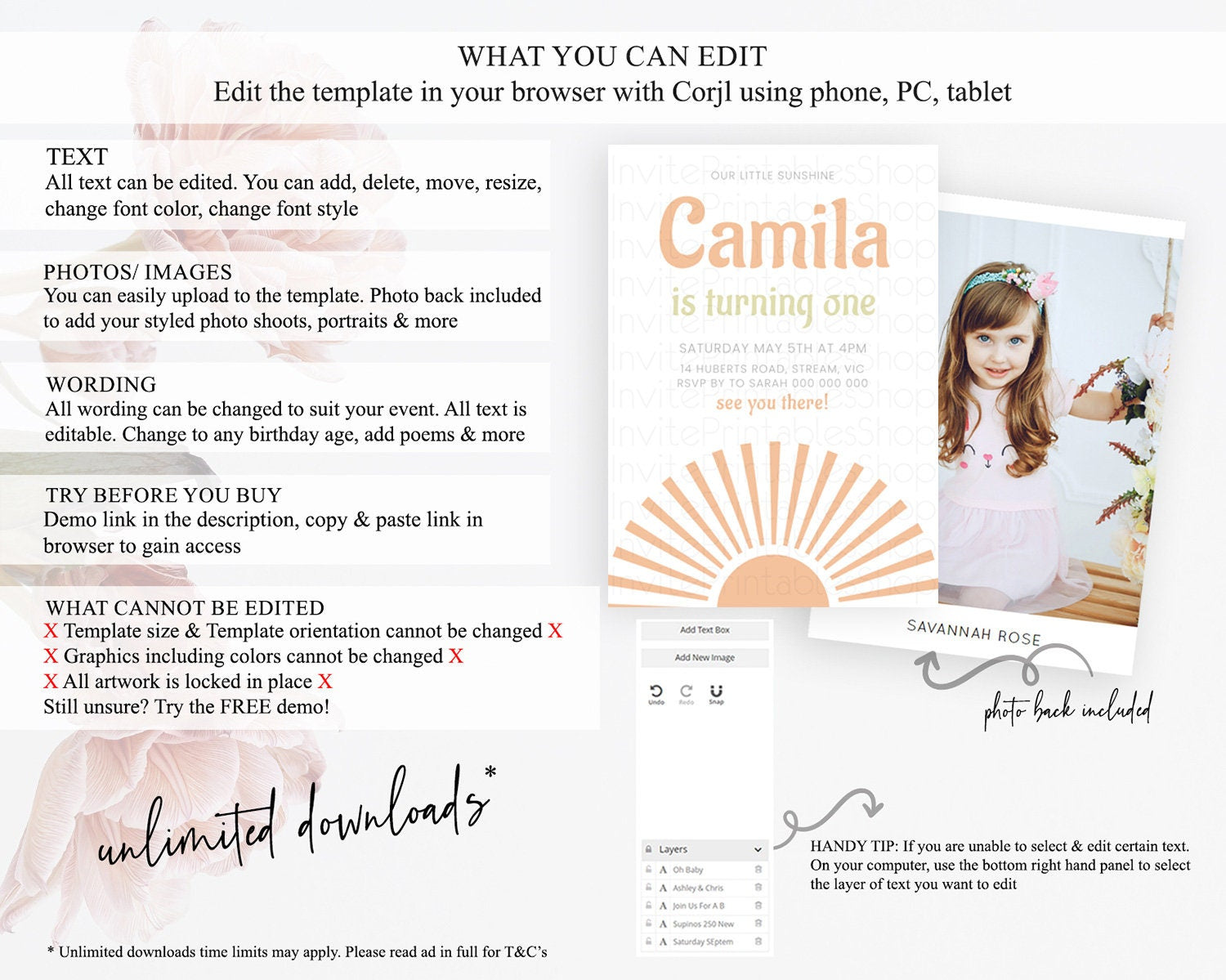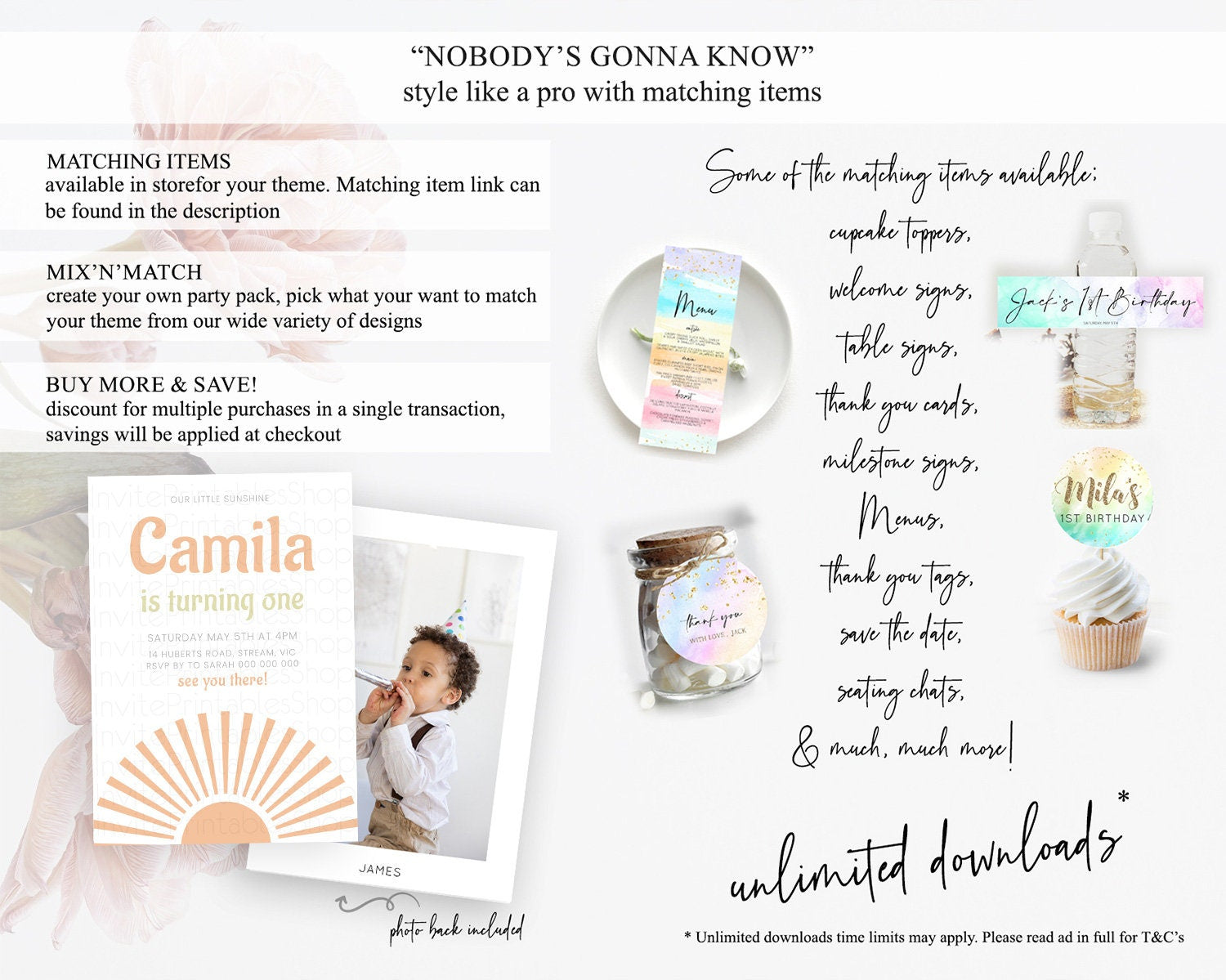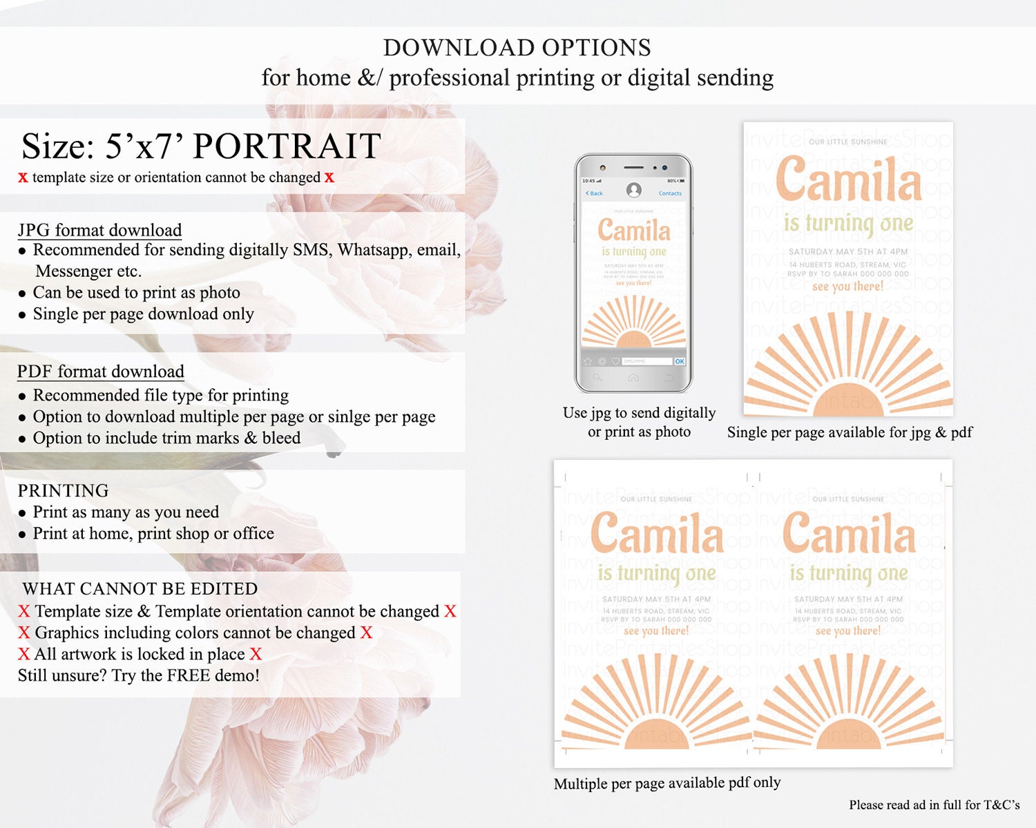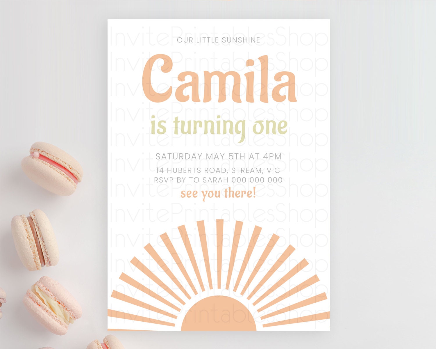 Miss Sunshine Invitation Little Sunshine Birthday Invitation Sun Invitation 1st Year Around Sun Boho Sun Party First Birthday Card 100202