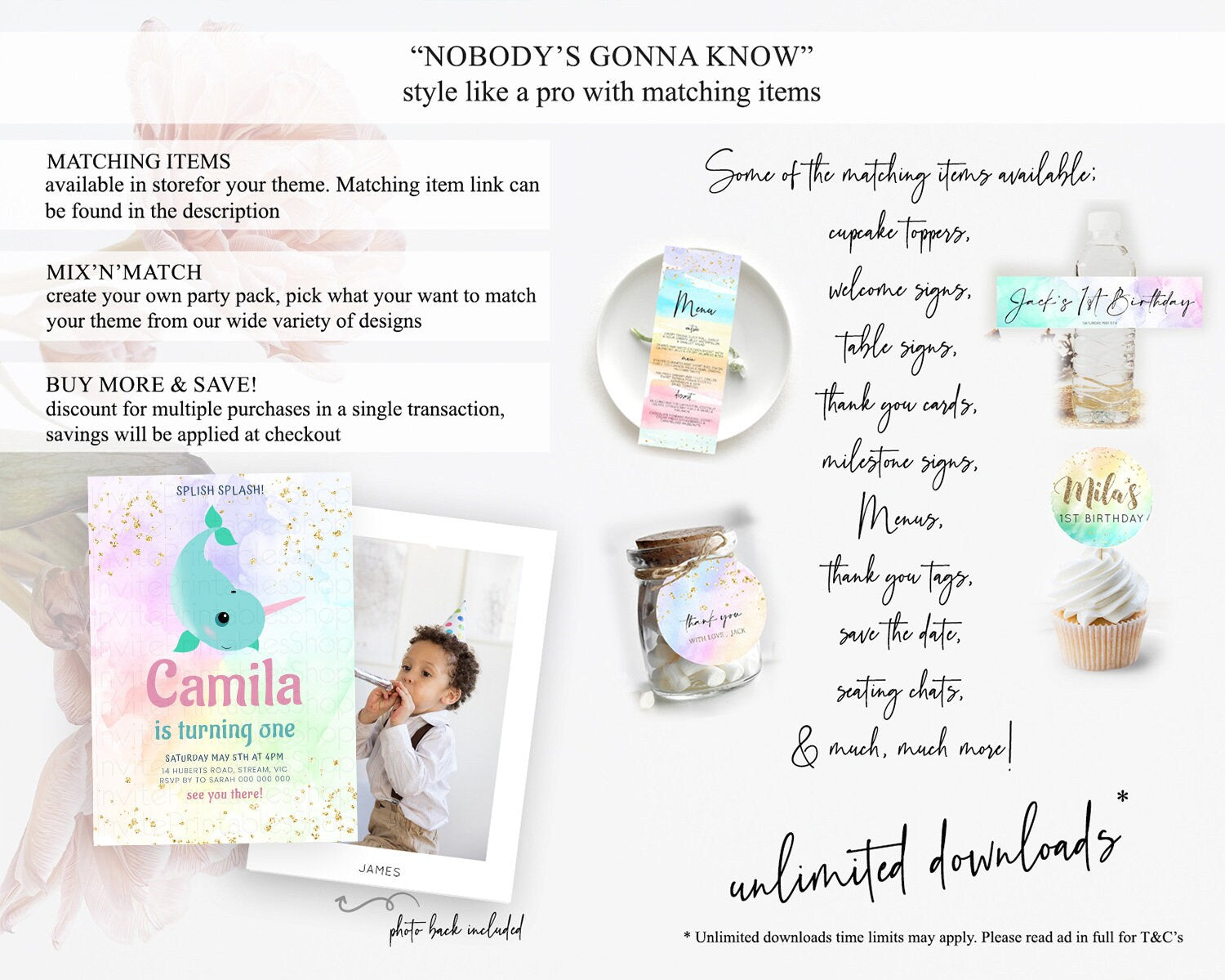Narwhal Birthday Invitation Narwhal Unicorn Invitation Rainbow Sea Pastel Under Sea Unicorn Narwhal Party 3rd 2nd 1st First Birthday D10726