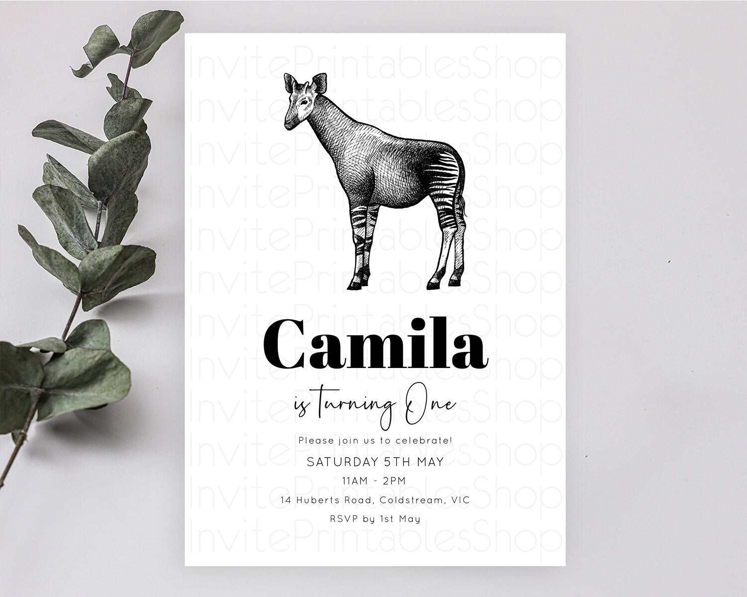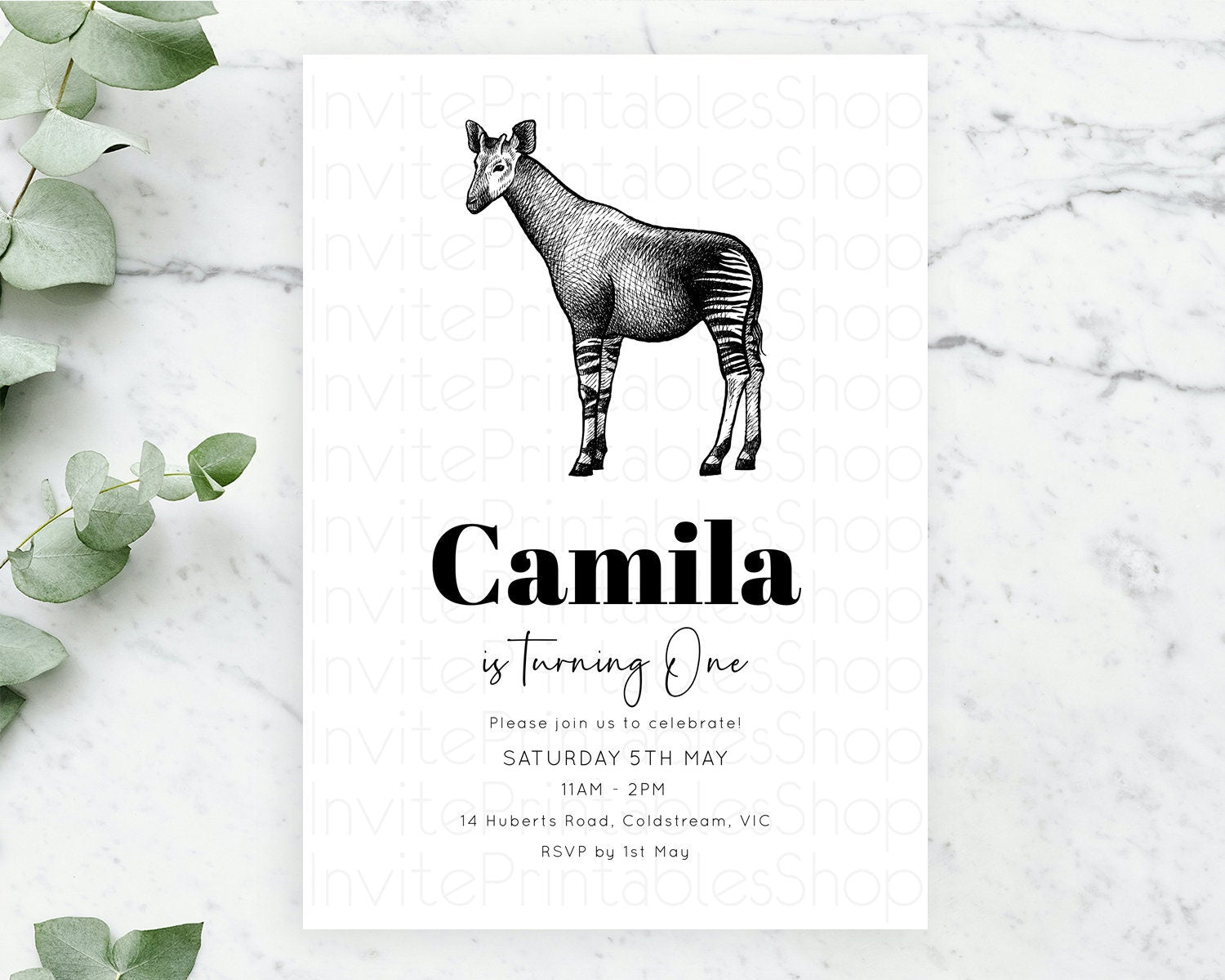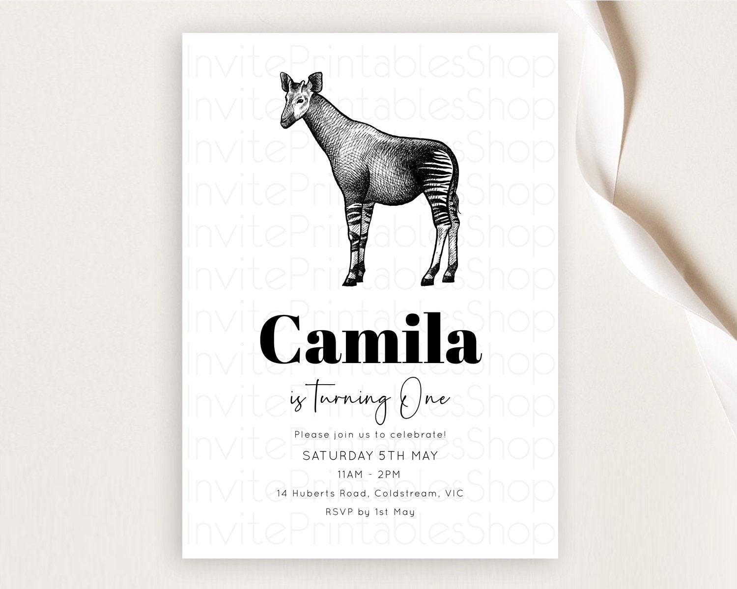 Okapi Birthday Invitation Okapi Invitation Okapi Birthday Okapi Safari Adventure Invite Okapi Palm Leaf Invite Zoo Party D10283