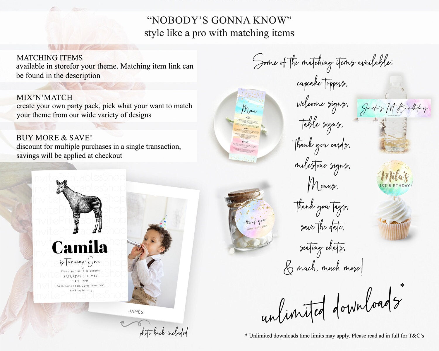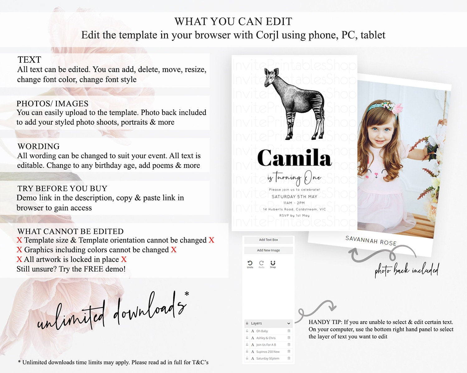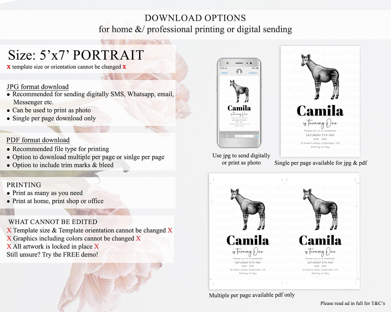 Okapi Birthday Invitation Okapi Invitation Okapi Birthday Okapi Safari Adventure Invite Okapi Palm Leaf Invite Zoo Party D10283