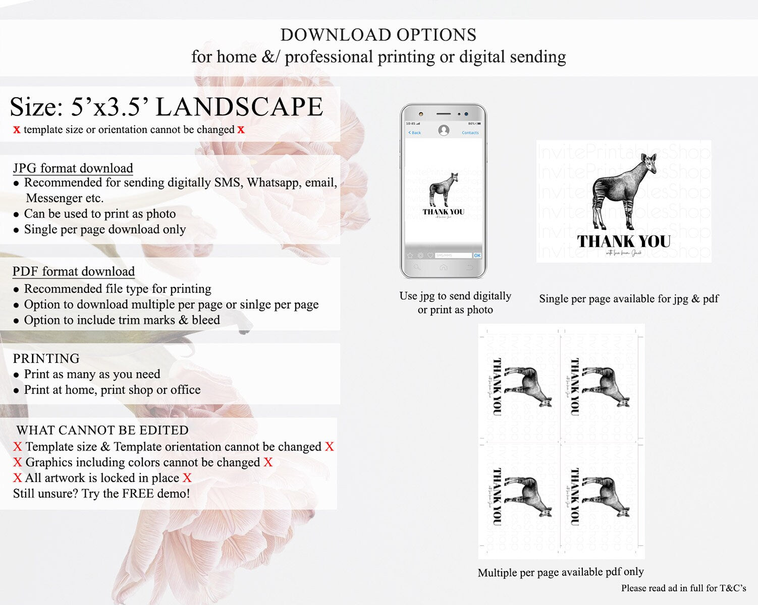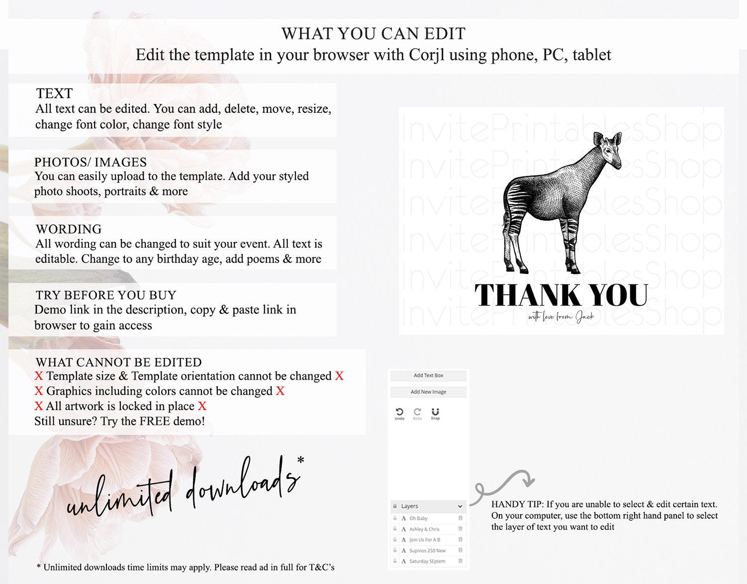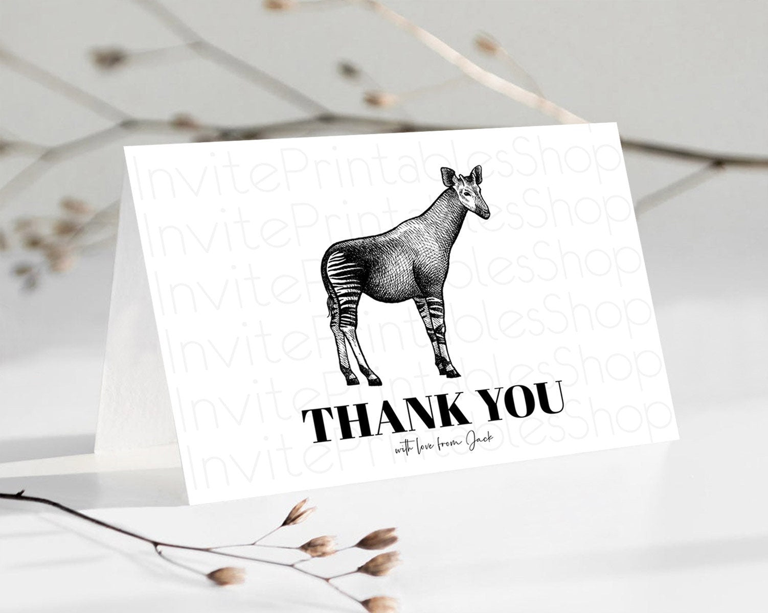 Okapi Thank You Okapi Thank You Card Okapi Party Cards Birthday Thank You Card Safari Card Template Okapi Teacher Thank You Cards D10283