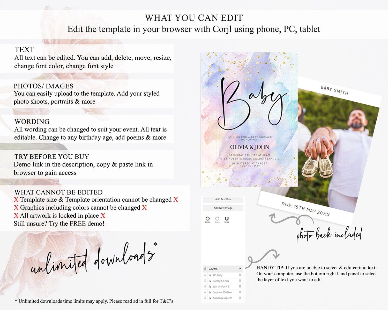 • After purchase, Corjl emails your editing link. Allow up to 15 minutes for delivery.