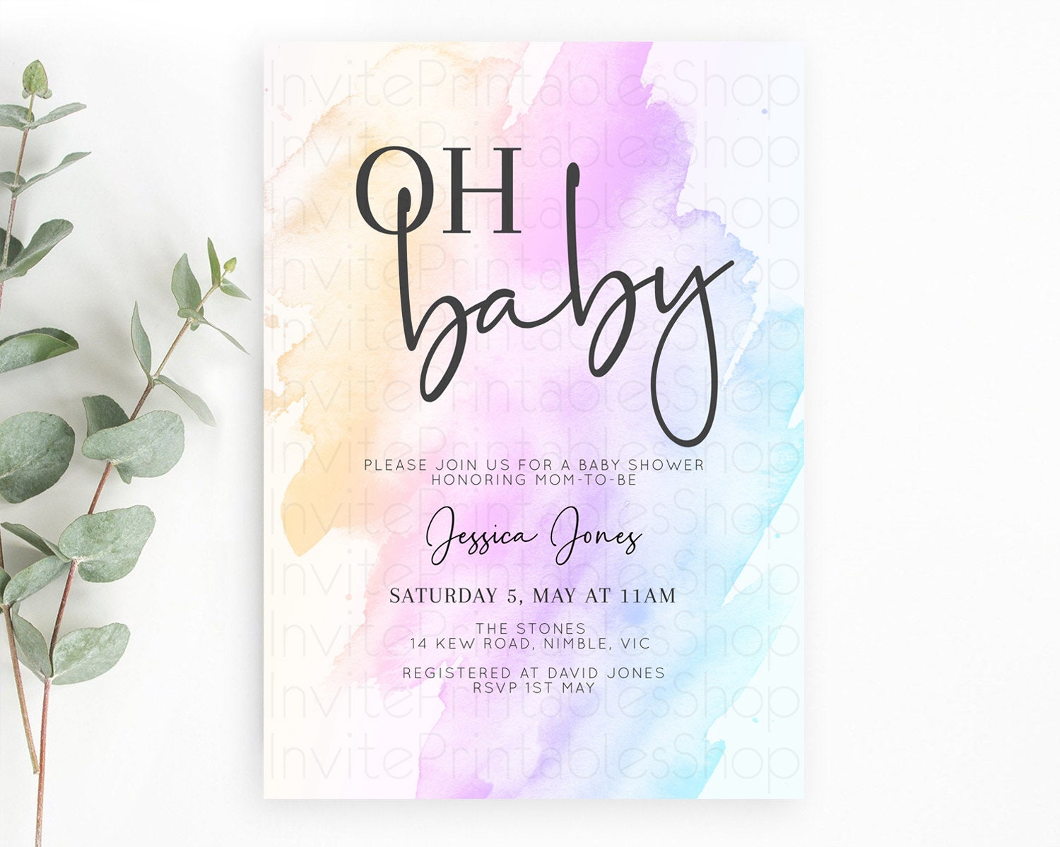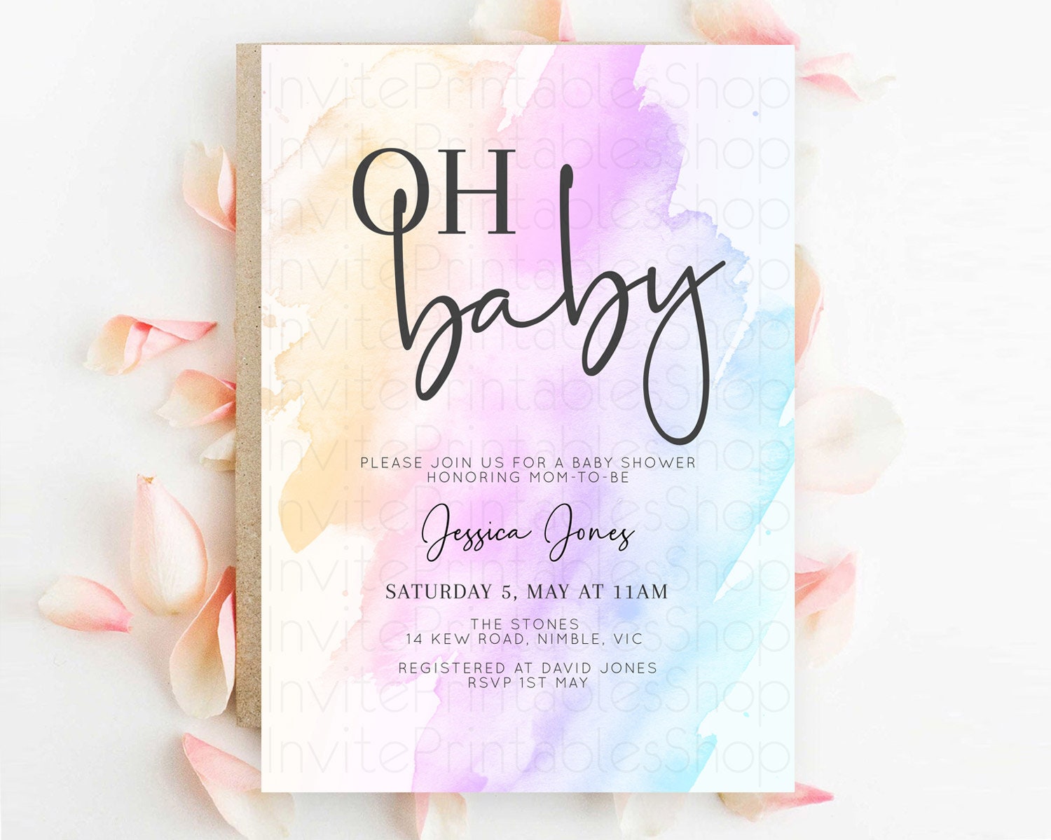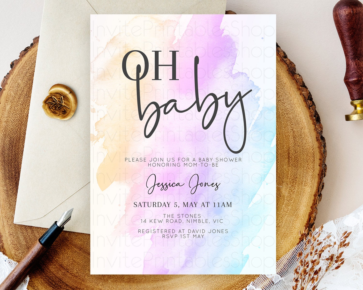 Pastel Baby Shower Invitation Rainbow Baby Shower Invitation Colorful Pastel Watercolor Invitation Gold Glitter Sprinkles Ombre D10177