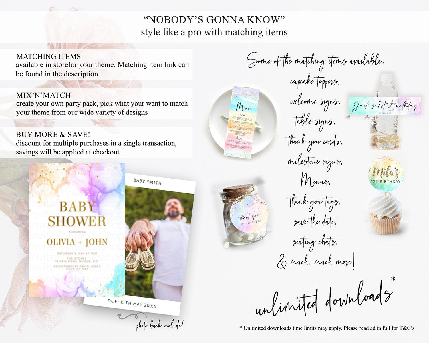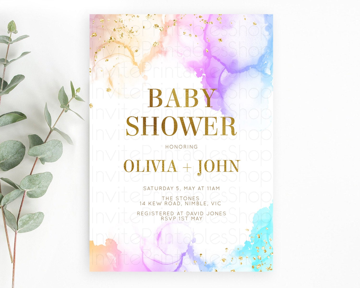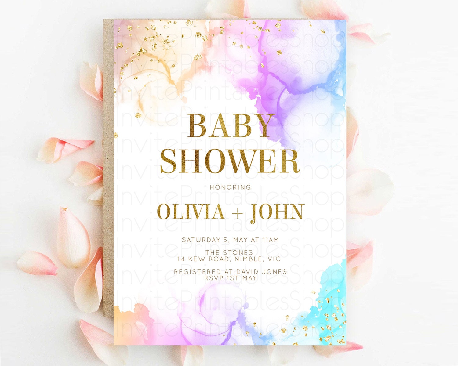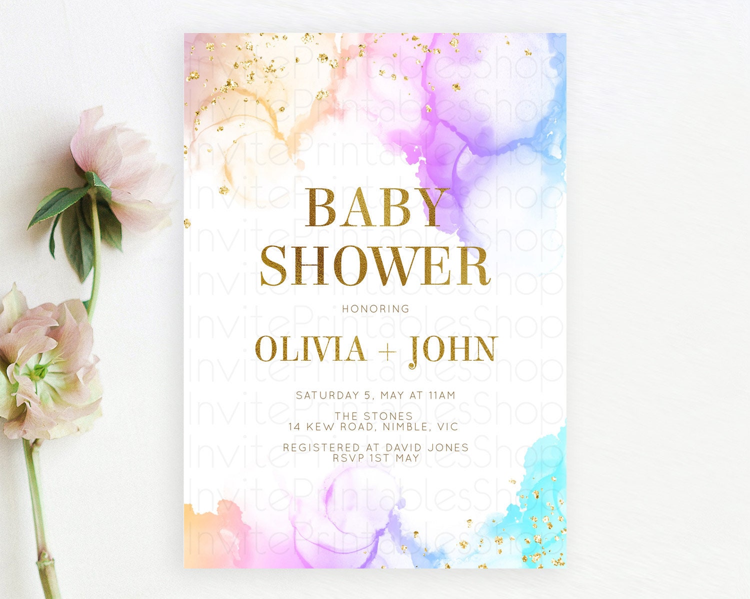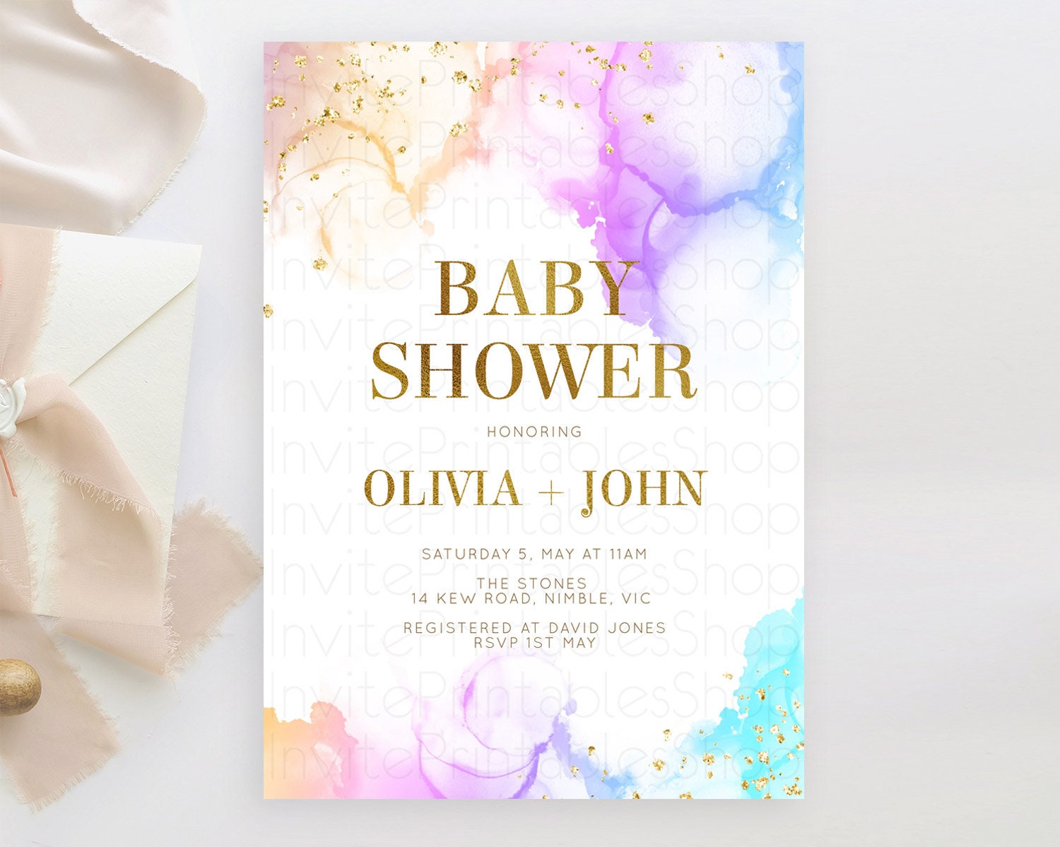 Pastel Baby Shower Invitation Rainbow Baby Shower Invitation Colorful Pastel Watercolor Invitation Gold Glitter Sprinkles Ombre D10180