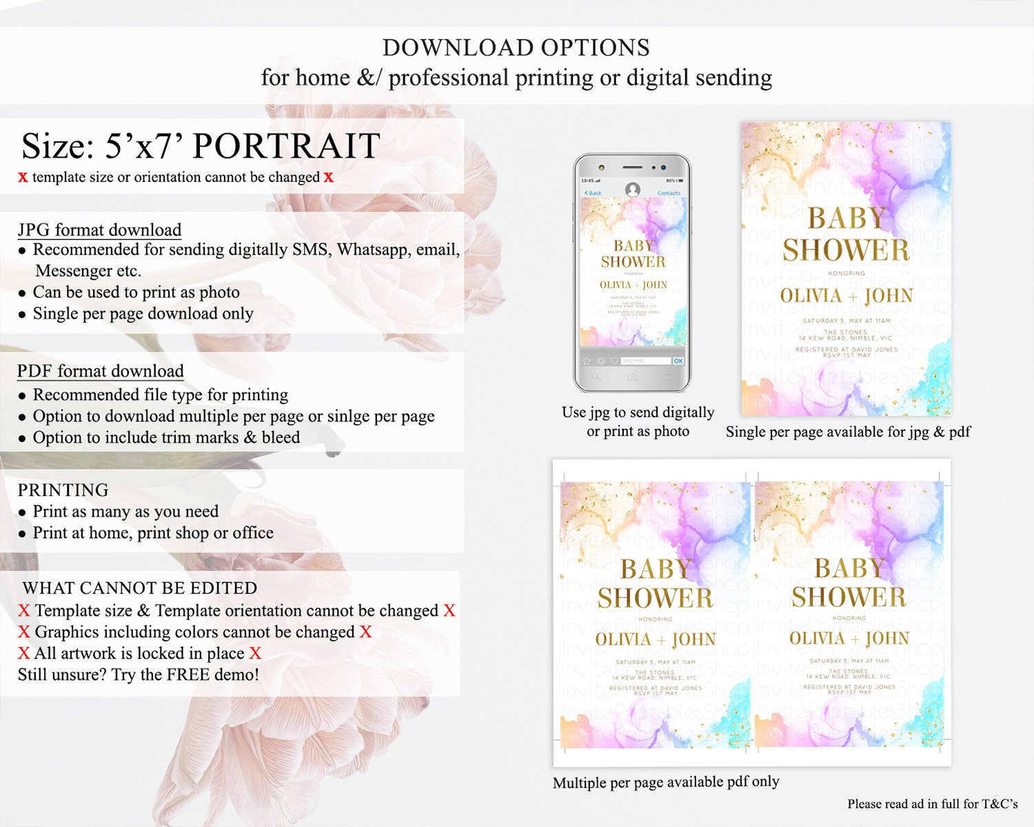 • Template size & orientation cannot be changed. Please use the demo link to confirm this product suits your needs.