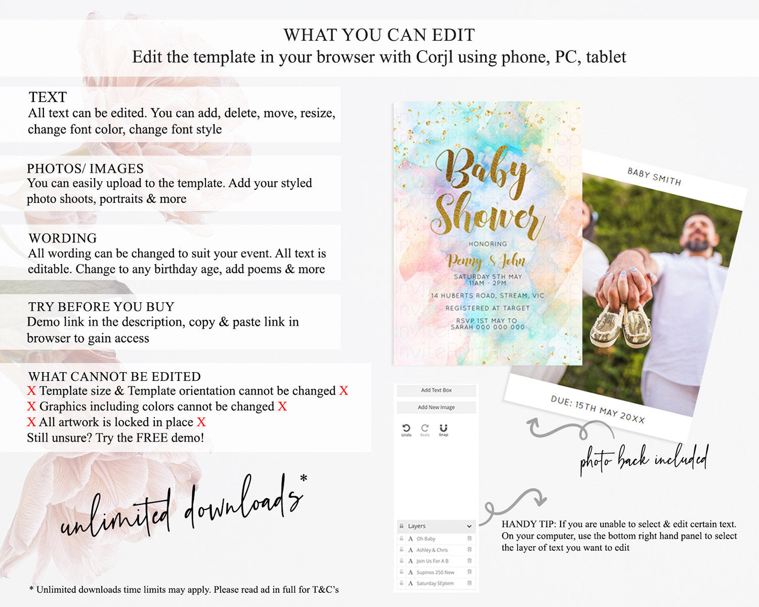 • After purchase, Corjl emails your editing link. Allow up to 15 minutes for delivery.