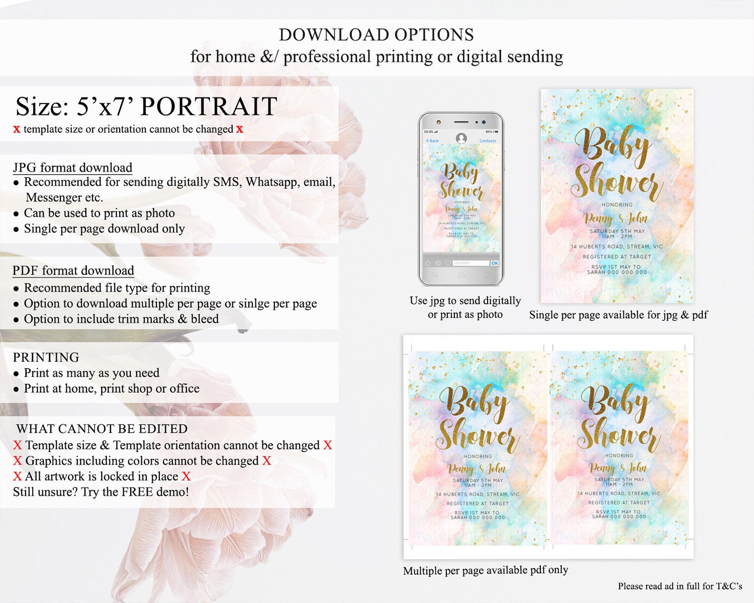 • Template size & orientation cannot be changed. Please use the demo link to confirm this product suits your needs.