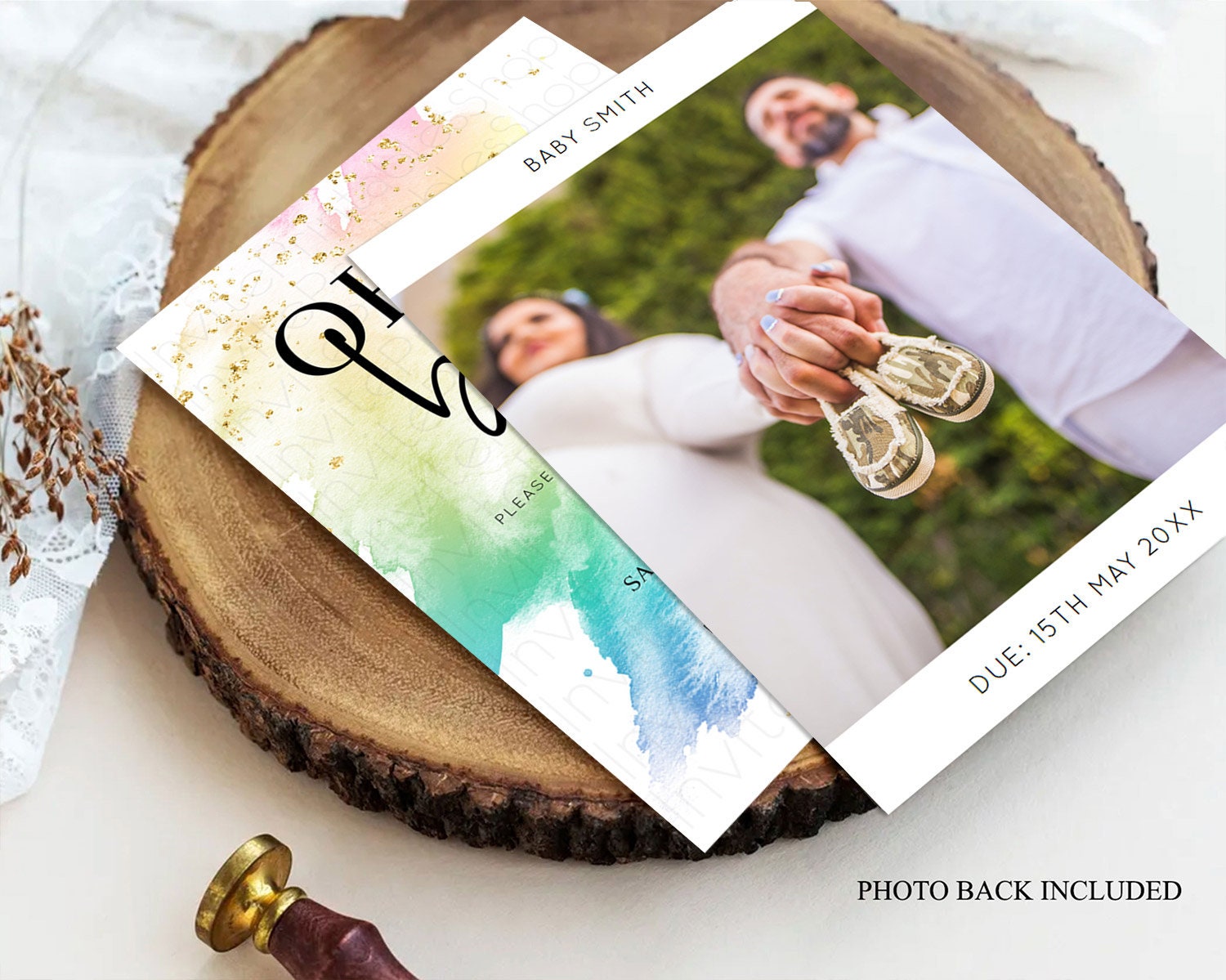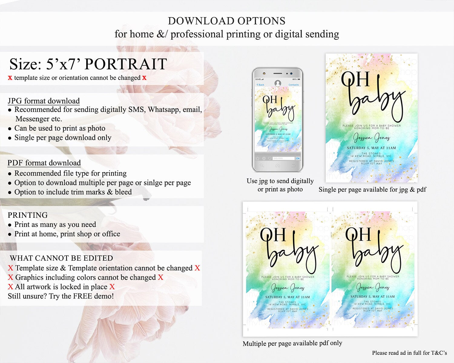 Pastel Baby Shower Invitation Rainbow Baby Shower Invitation Colorful Pastel Watercolor Invitation Gold Glitter Sprinkles Ombre D10279