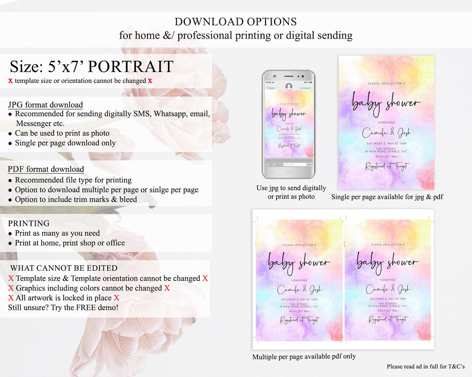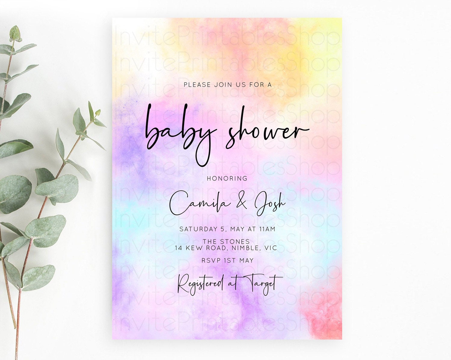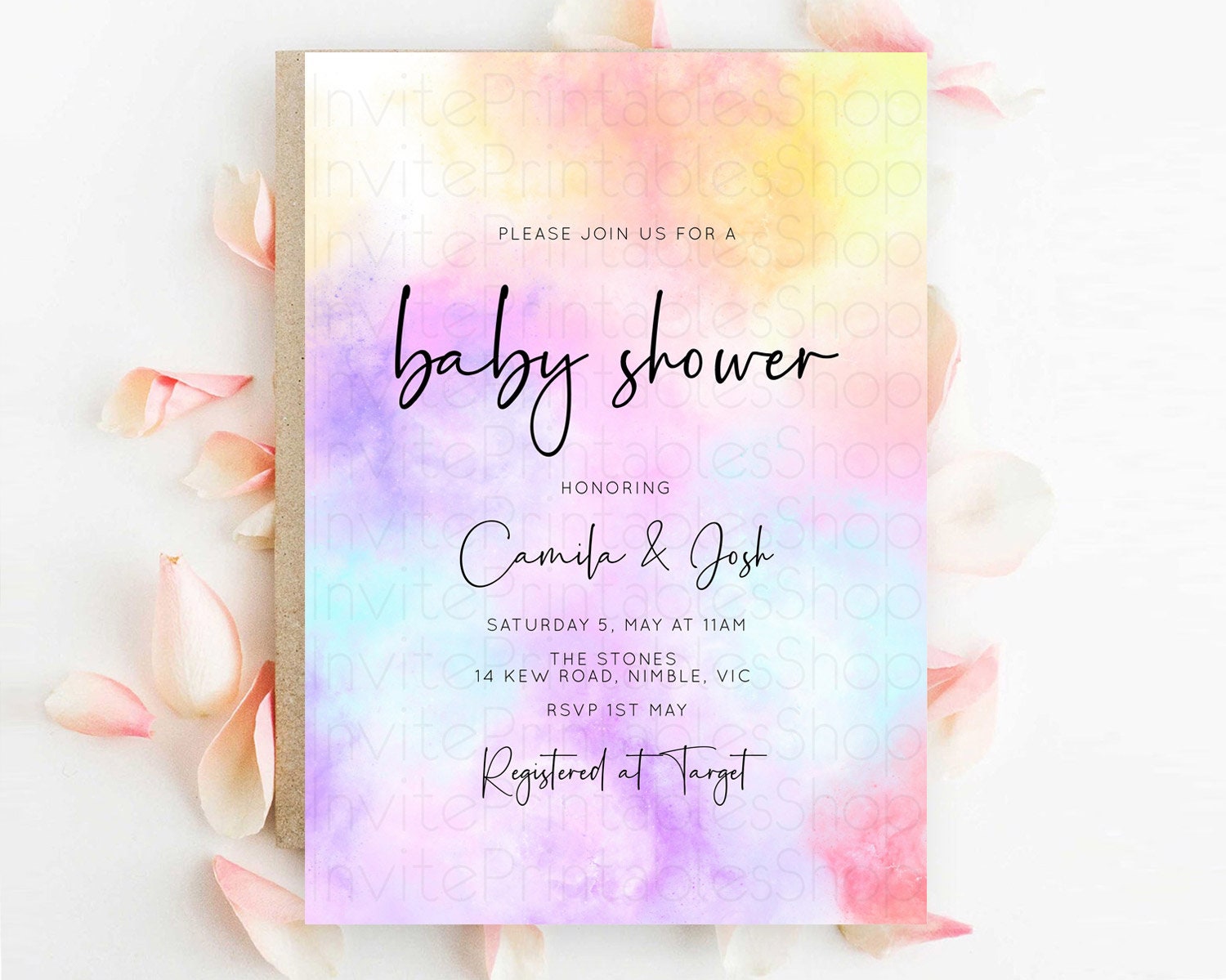 Pastel Baby Shower Invitation Rainbow Baby Shower Invitation Colorful Pastel Watercolor Invitation Gold Glitter Sprinkles Ombre D10438