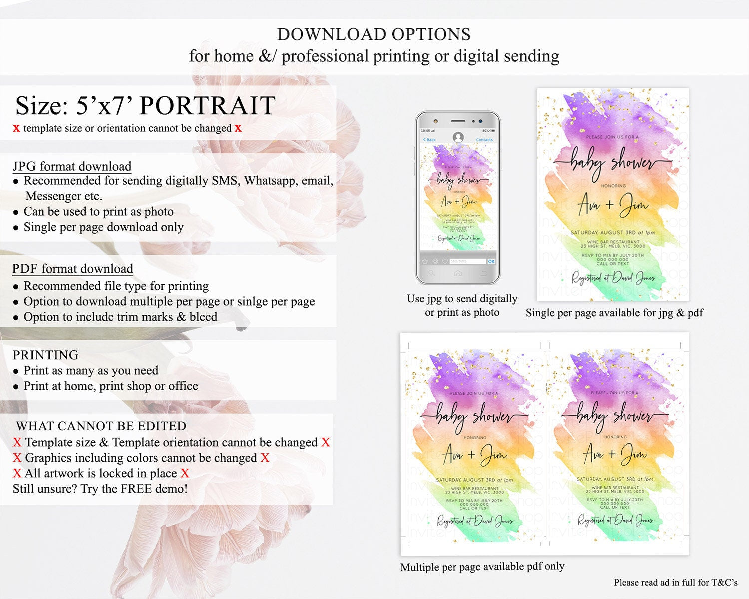 • Template size & orientation cannot be changed. Please use the demo link to confirm this product suits your needs.