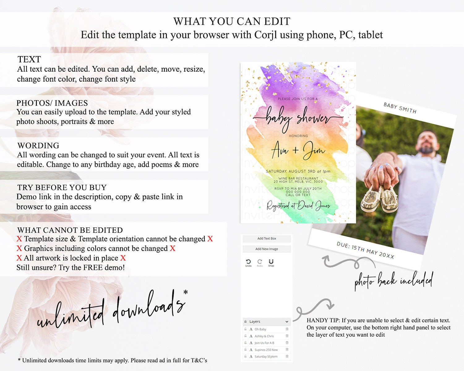 • After purchase, Corjl emails your editing link. Allow up to 15 minutes for delivery.