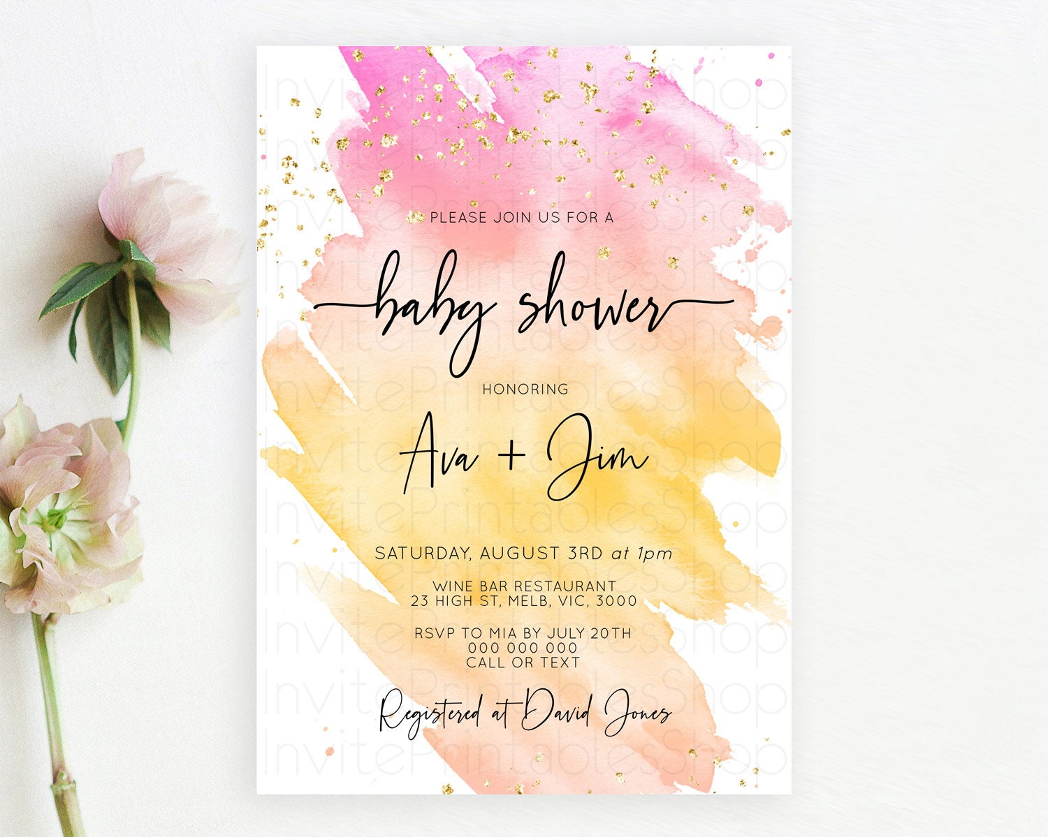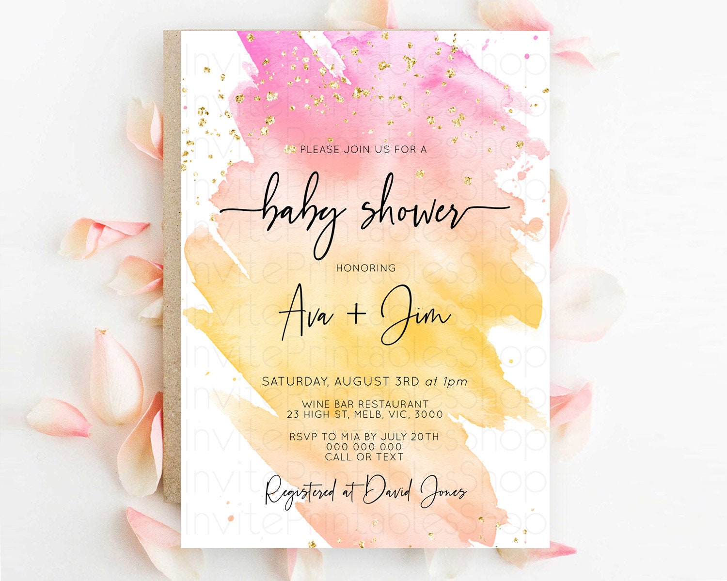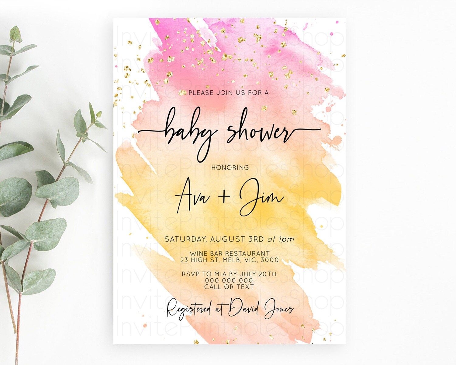 Pastel Baby Shower Invitation Rainbow Baby Shower Invitation Colorful Pastel Watercolor Invitation Gold Glitter Sprinkles Ombre D10527