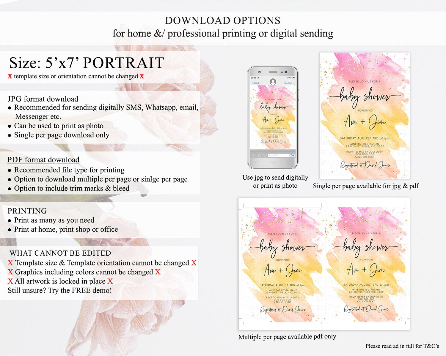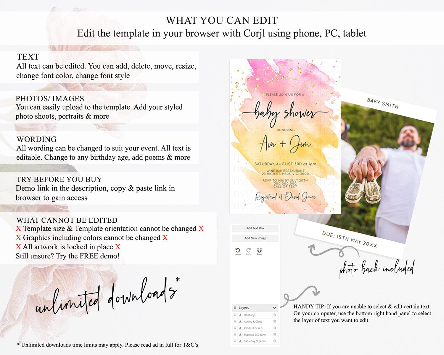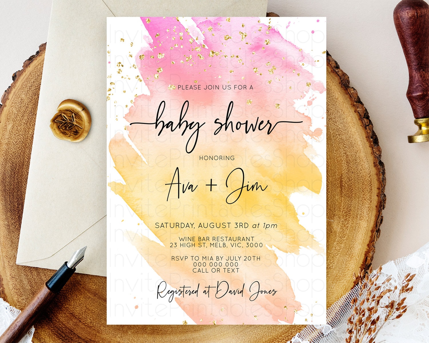Pastel Baby Shower Invitation Rainbow Baby Shower Invitation Colorful Pastel Watercolor Invitation Gold Glitter Sprinkles Ombre D10527