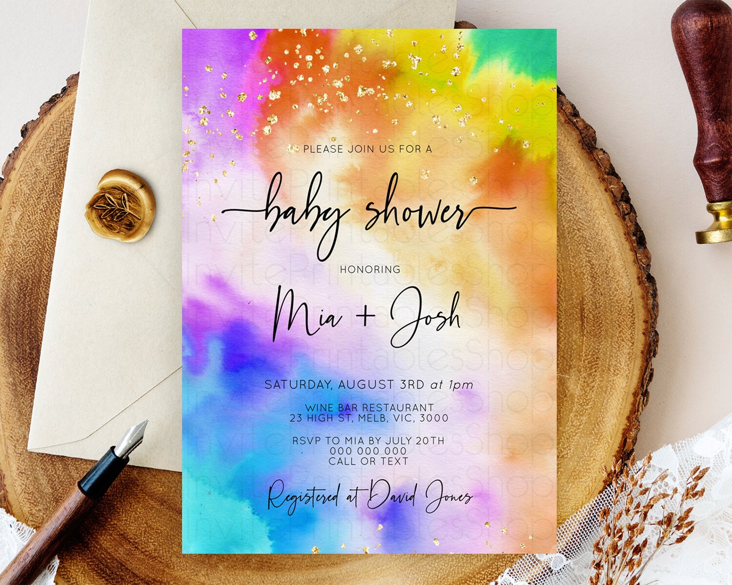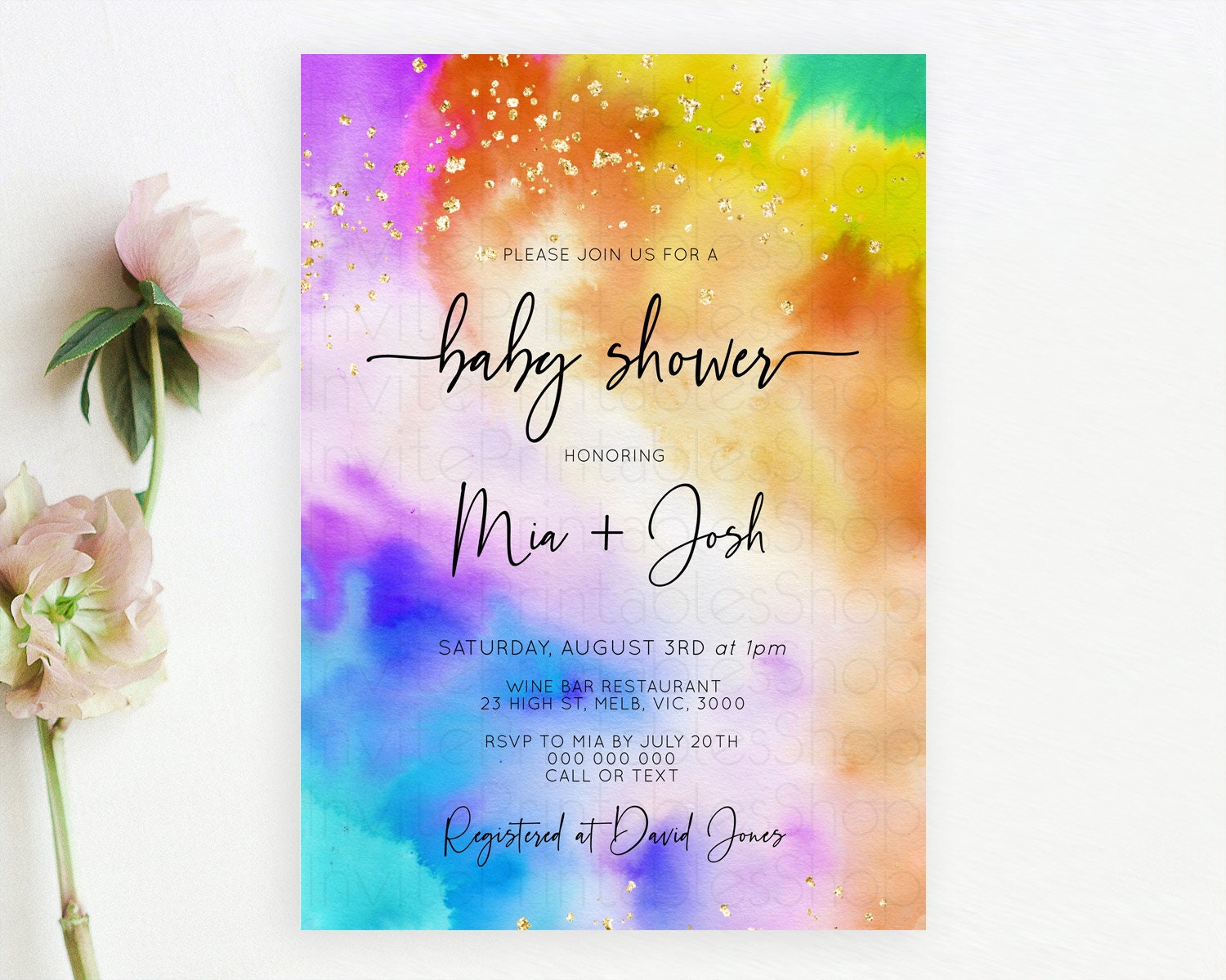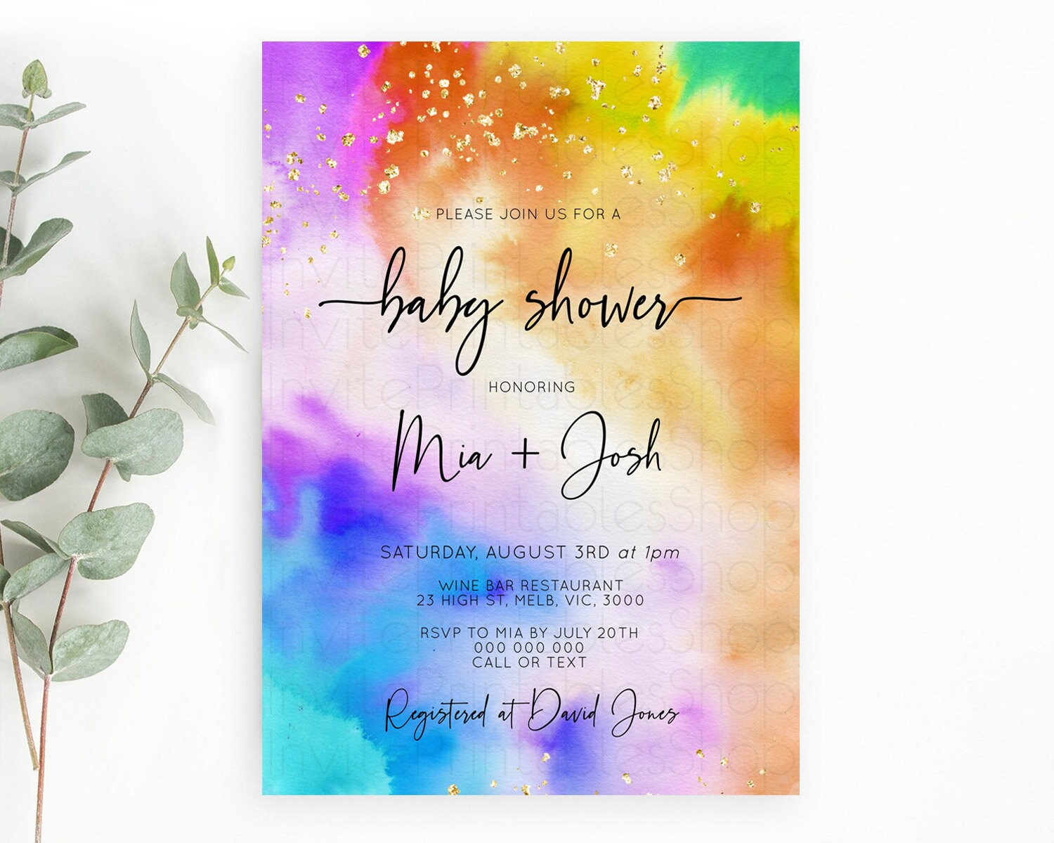 Pastel Baby Shower Invitation Rainbow Baby Shower Invitation Colorful Pastel Watercolor Invitation Gold Glitter Sprinkles Ombre D10530