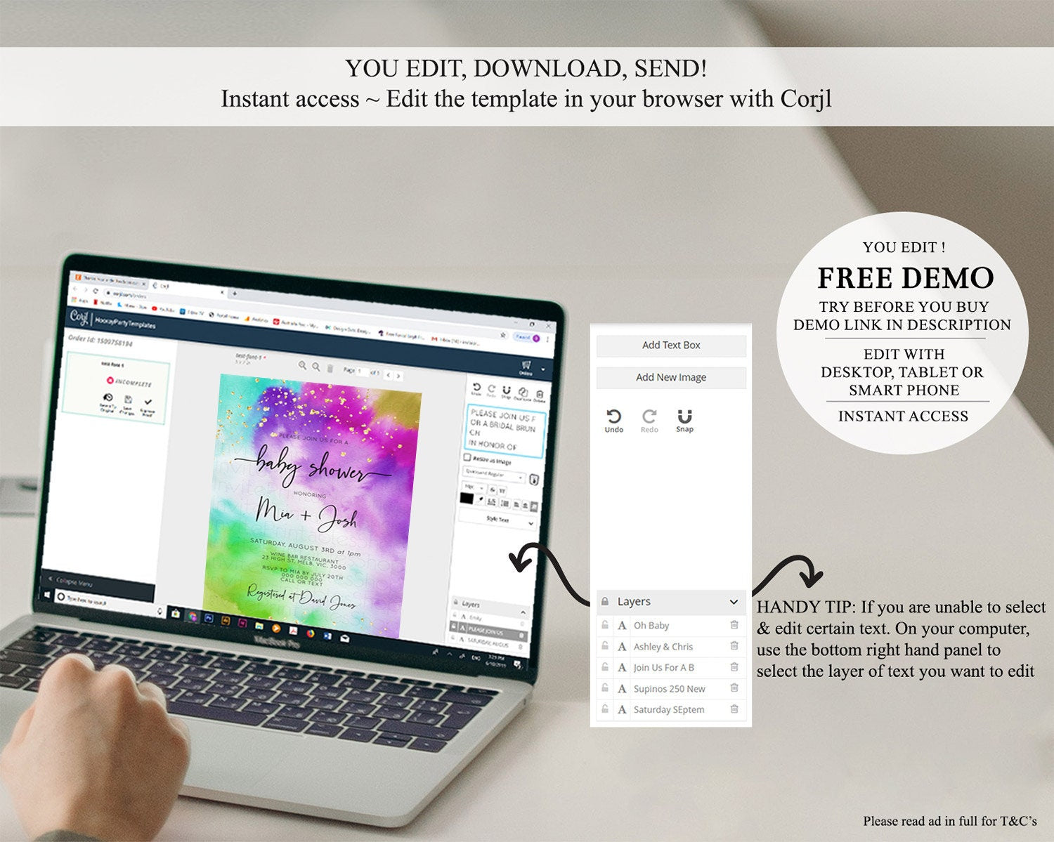 • After purchase, Corjl emails your editing link. Allow up to 15 minutes for delivery.