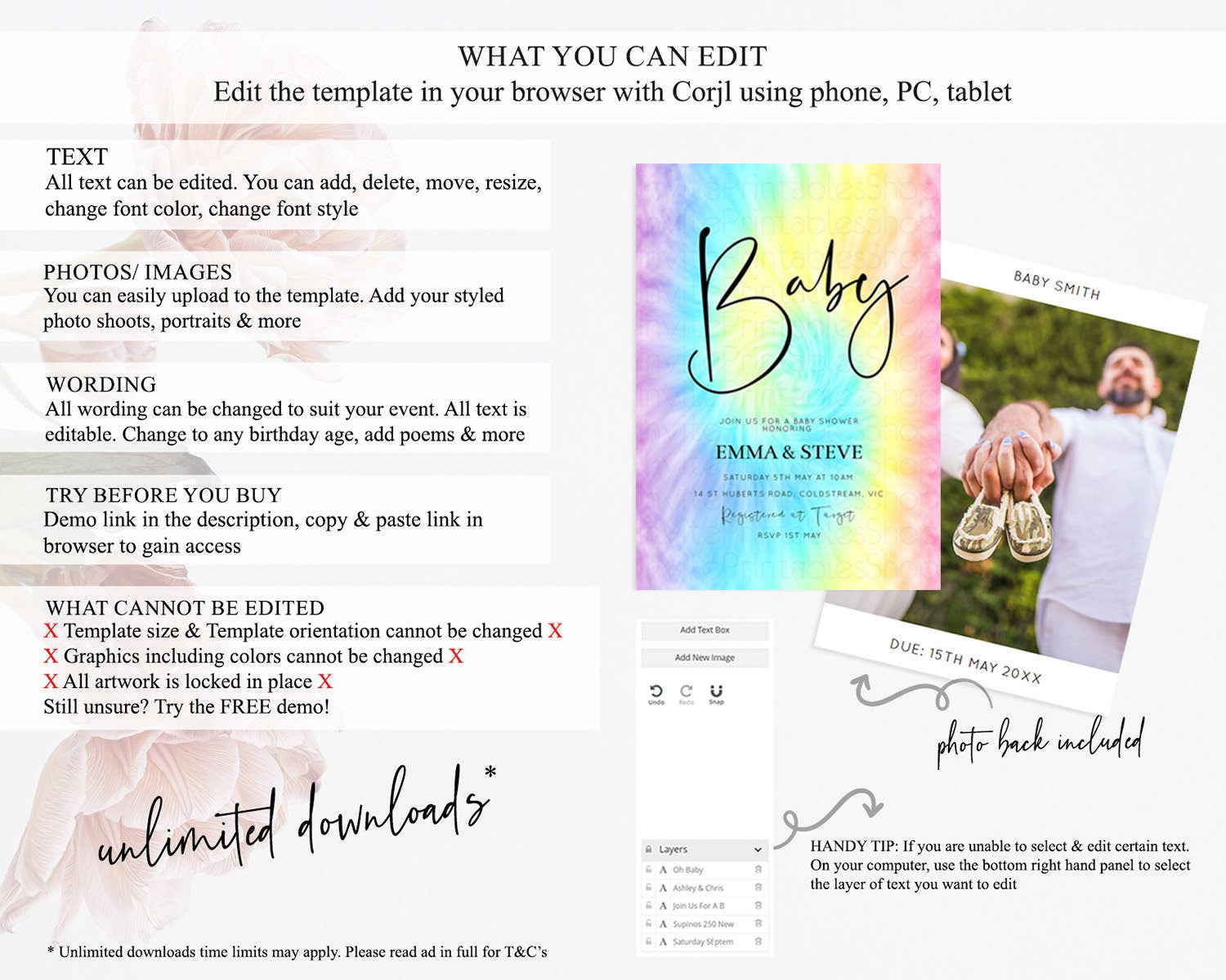 Pastel Baby Shower Invitation Rainbow Baby Shower Invitation Colorful Pastel Watercolor Invitation Gold Glitter Sprinkles Ombre D10578