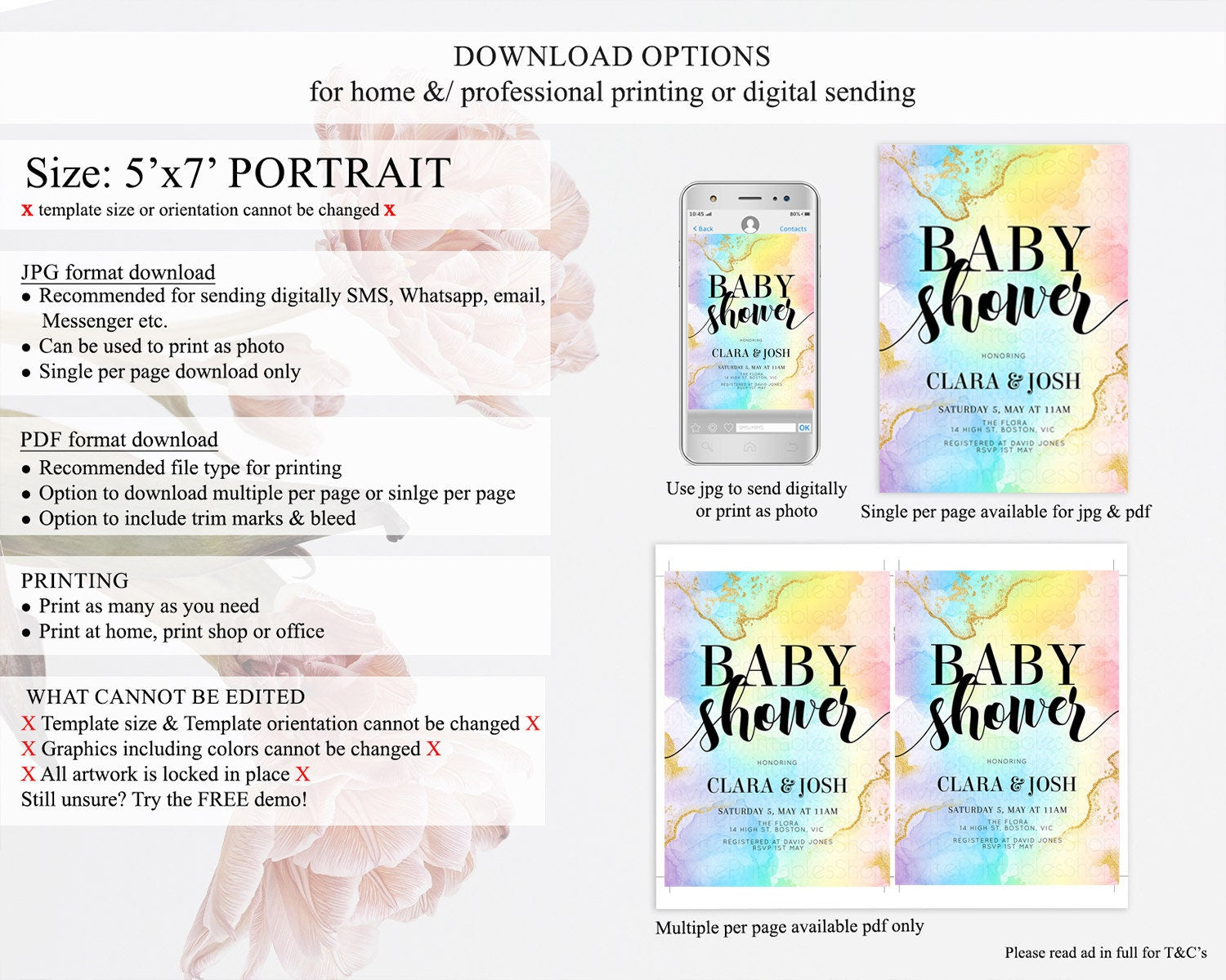 • Template size & orientation cannot be changed. Please use the demo link to confirm this product suits your needs.