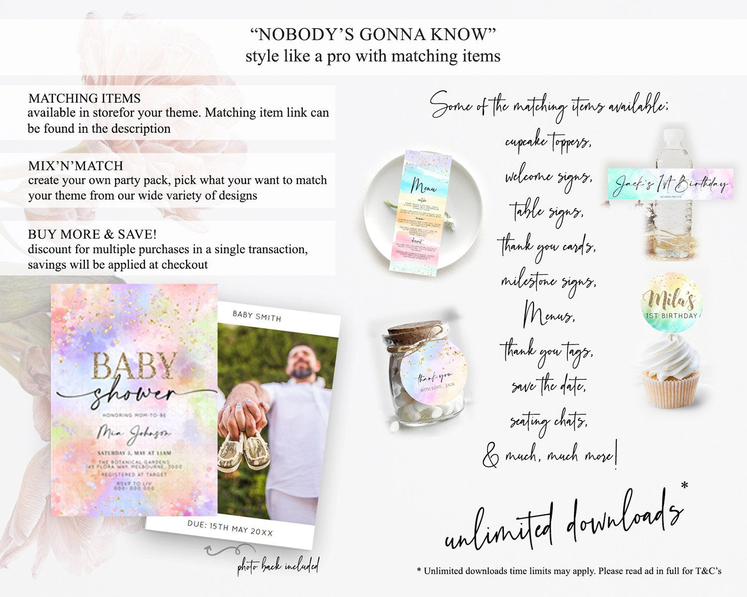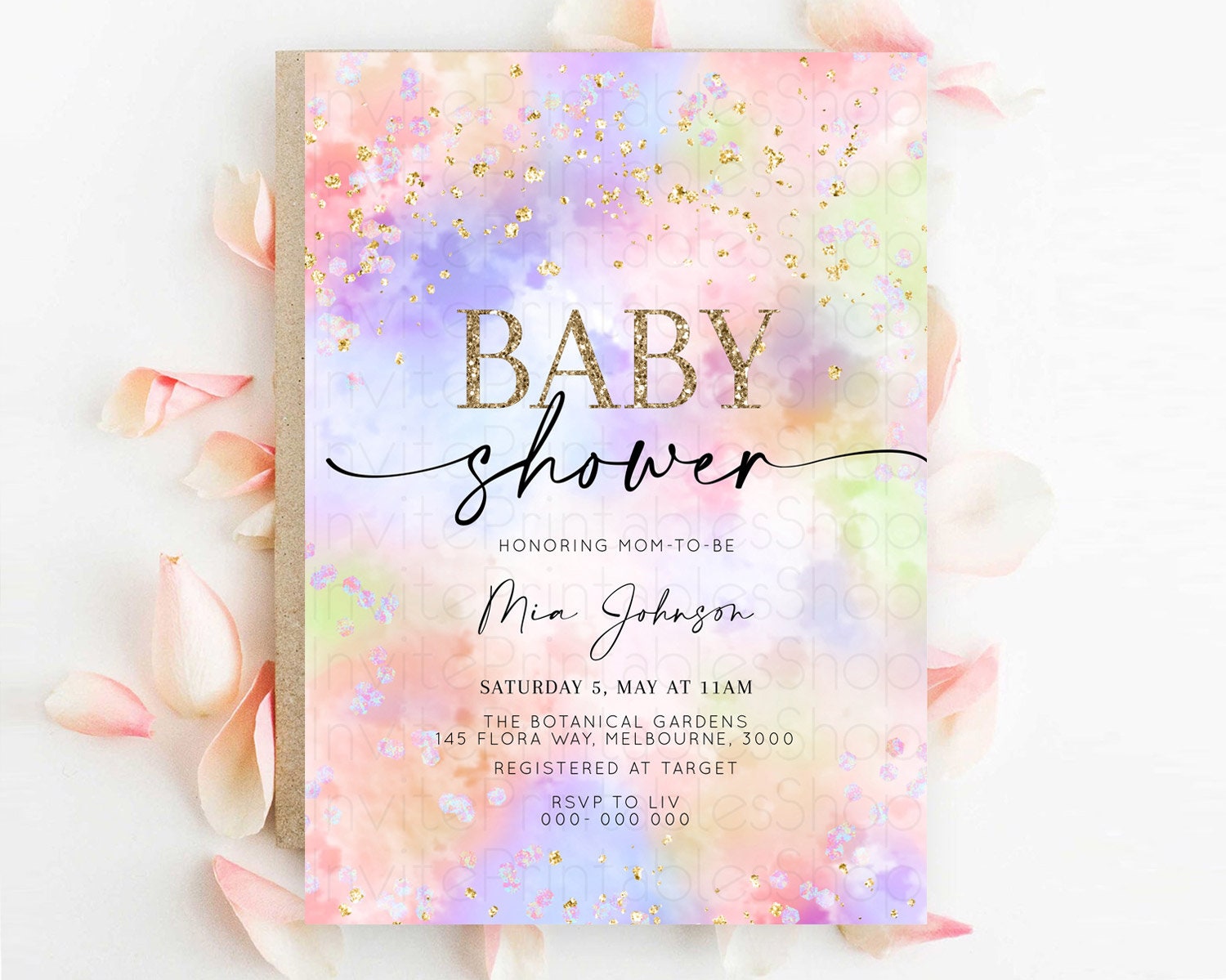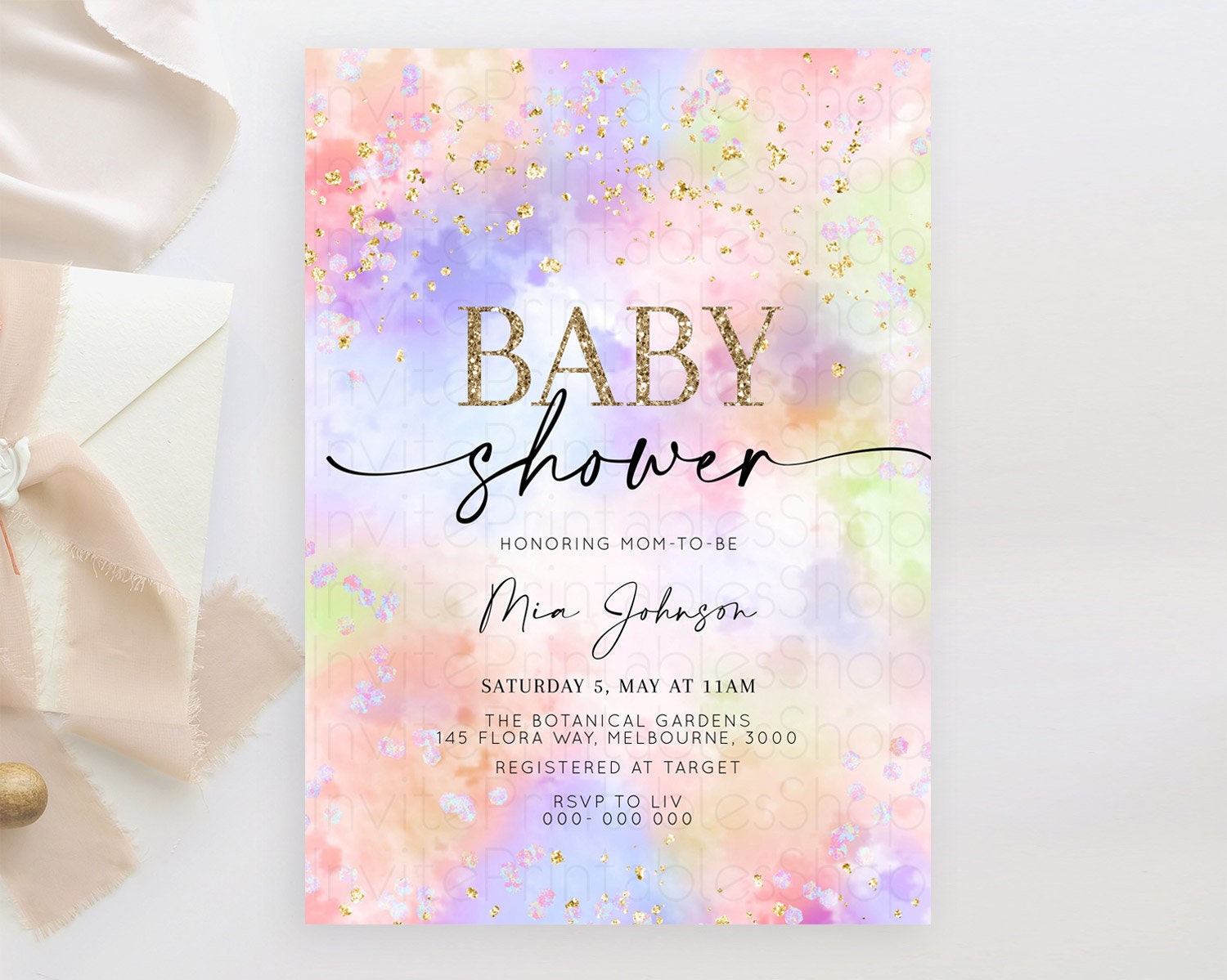 Pastel Baby Shower Invitation Rainbow Baby Shower Invitation Colorful Pastel Watercolor Invitation Gold Glitter Sprinkles Ombre D10610