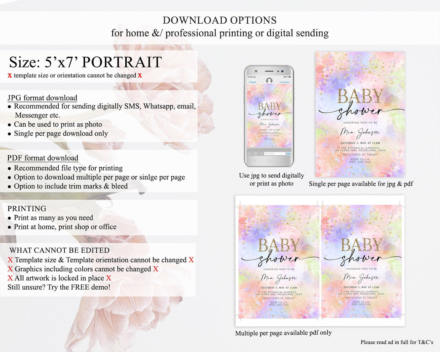• Template size & orientation cannot be changed. Please use the demo link to confirm this product suits your needs.
