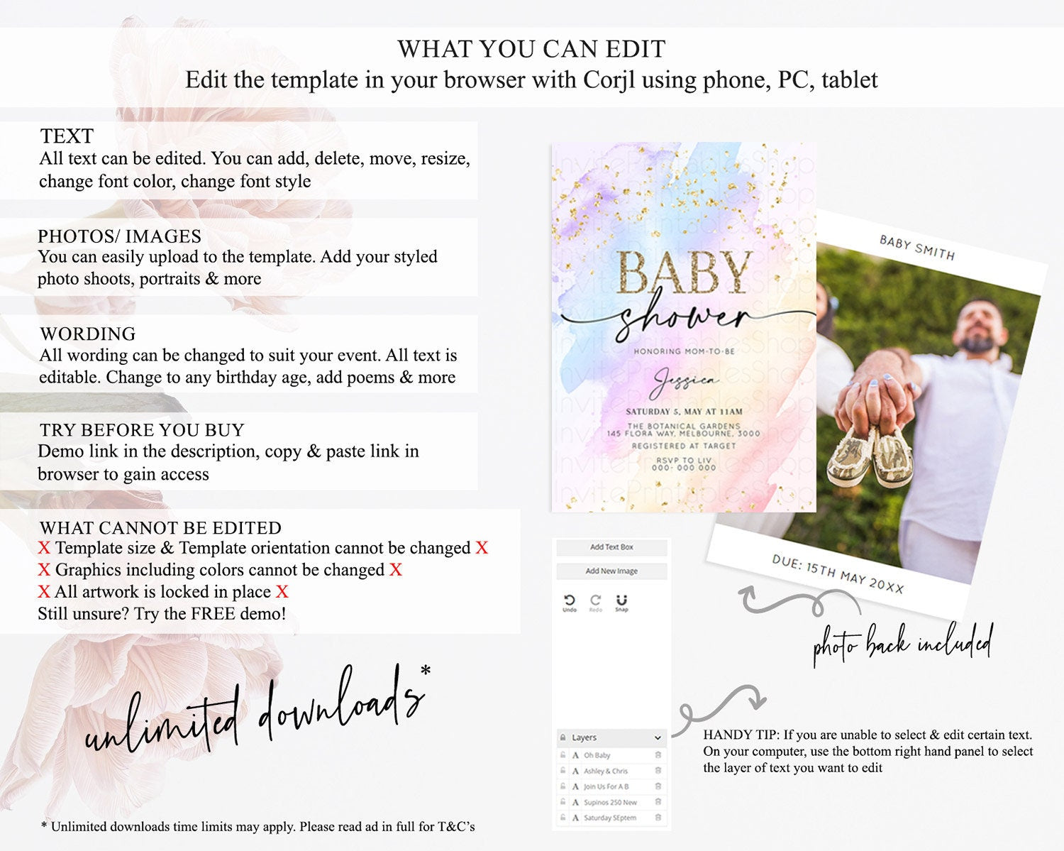 • After purchase, Corjl emails your editing link. Allow up to 15 minutes for delivery.