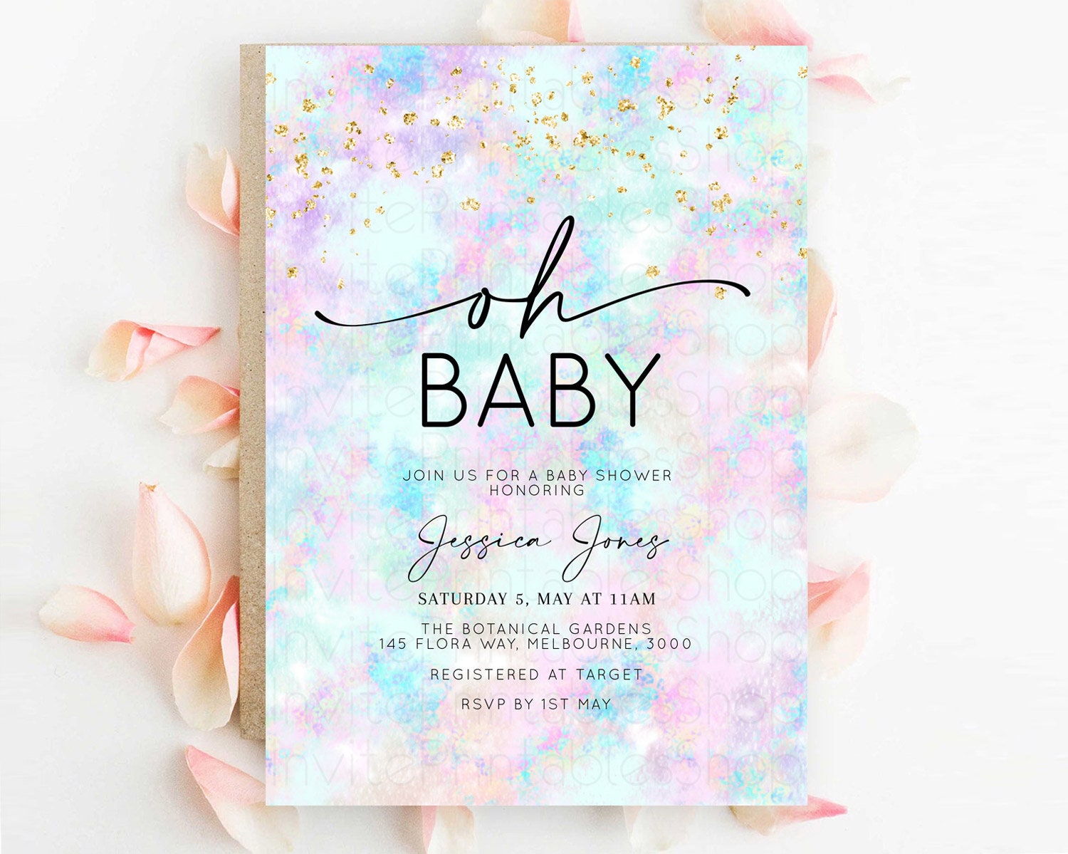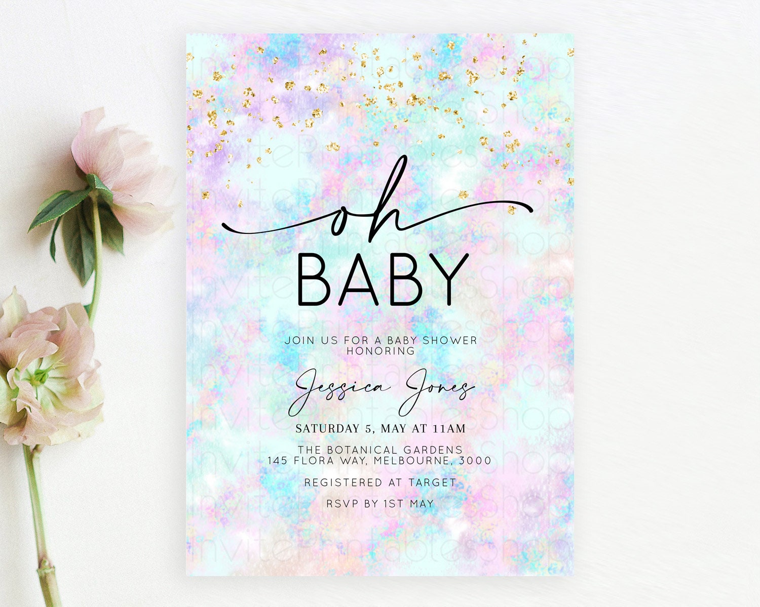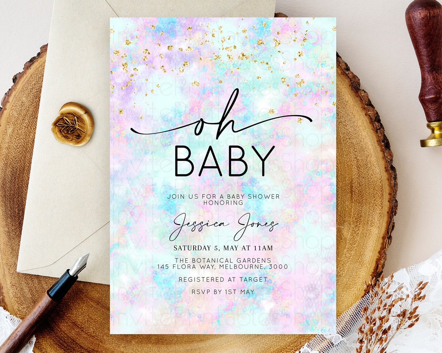 Pastel Baby Shower Invitation Rainbow Baby Shower Invitation Colorful Pastel Watercolor Invitation Gold Glitter Sprinkles Ombre D10652