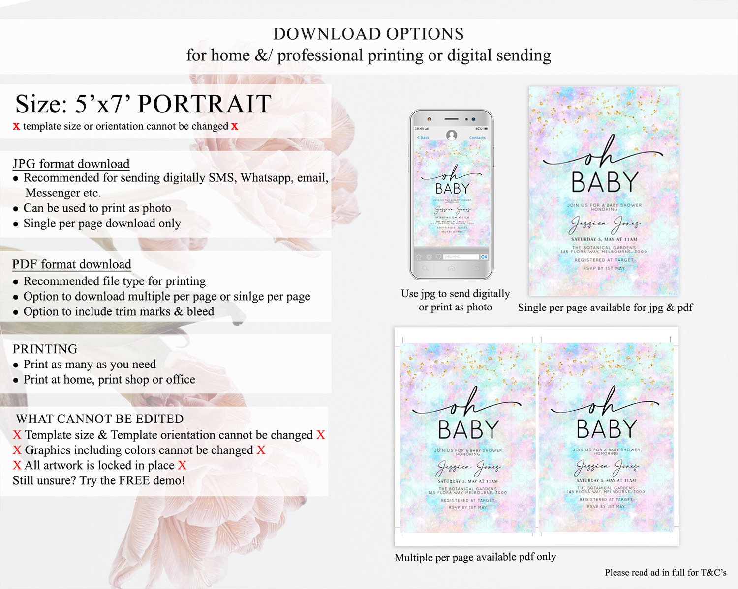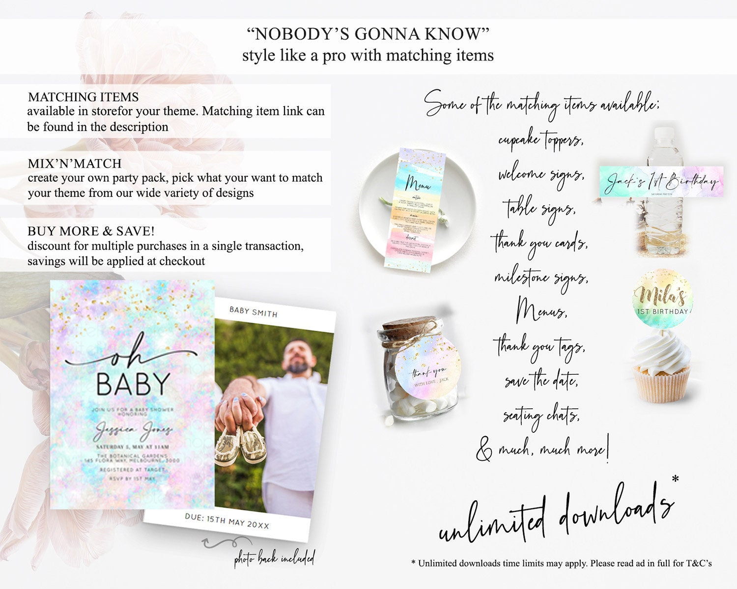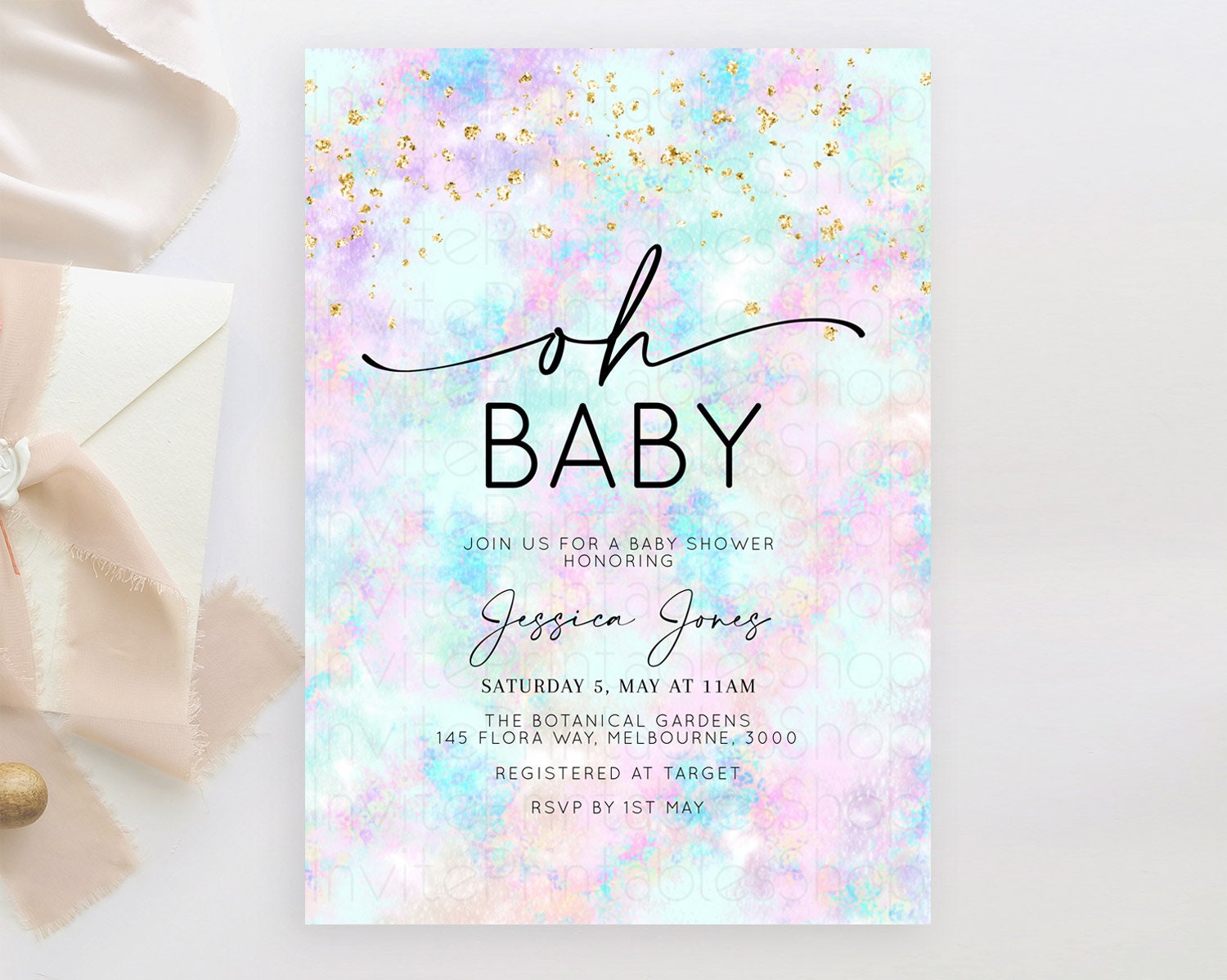 Pastel Baby Shower Invitation Rainbow Baby Shower Invitation Colorful Pastel Watercolor Invitation Gold Glitter Sprinkles Ombre D10652