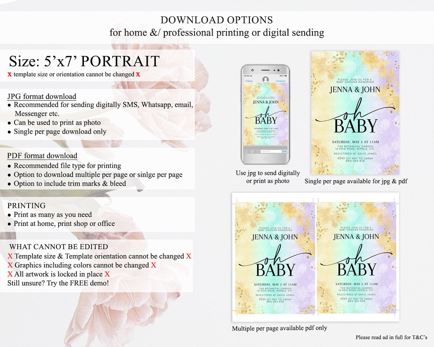 • Template size & orientation cannot be changed. Please use the demo link to confirm this product suits your needs.
