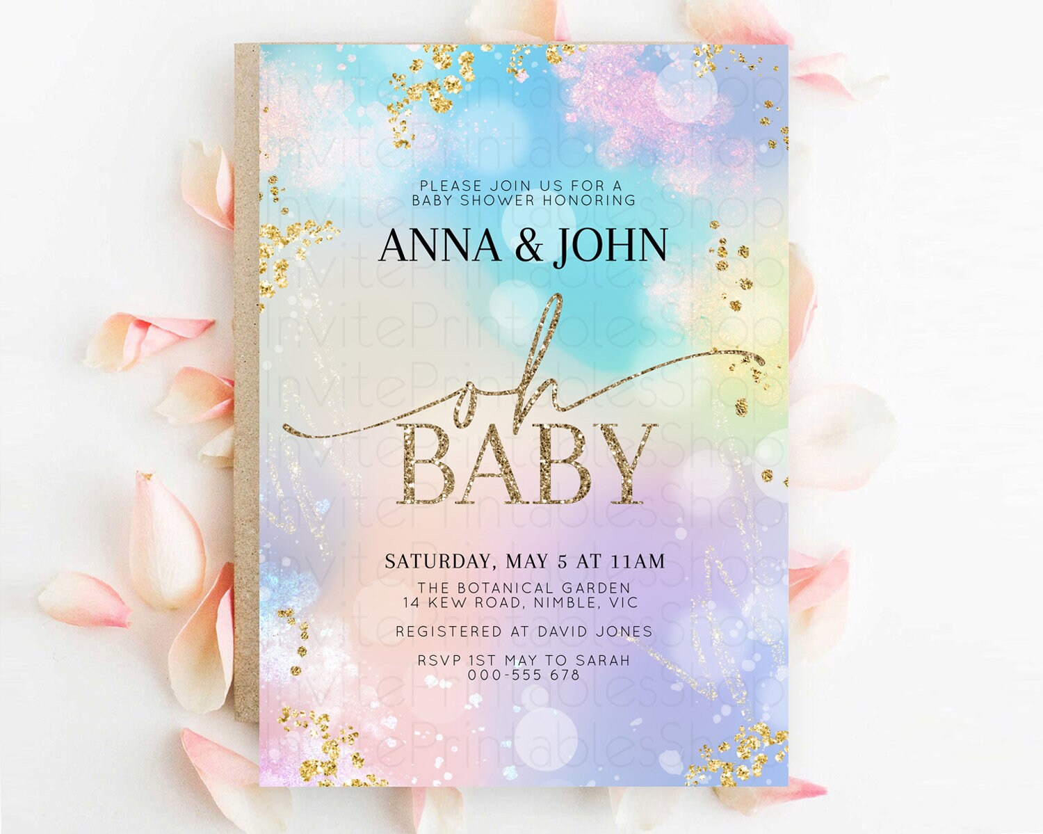 Pastel Baby Shower Invitation Rainbow Baby Shower Invitation Colorful Pastel Watercolor Invitation Gold Glitter Sprinkles Ombre D10675