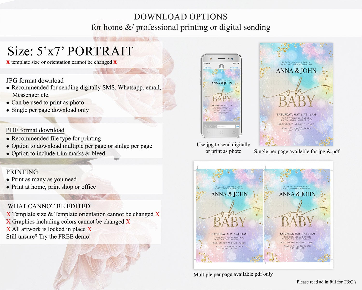 • Template size & orientation cannot be changed. Please use the demo link to confirm this product suits your needs.