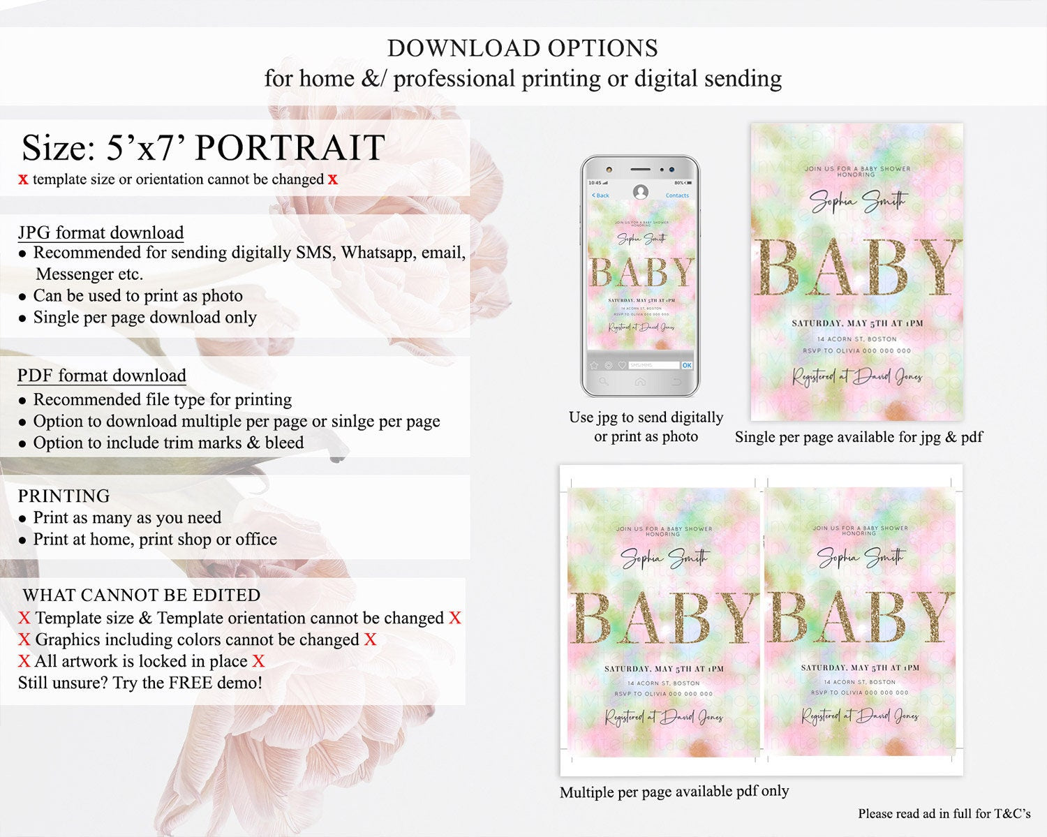 • Template size & orientation cannot be changed. Please use the demo link to confirm this product suits your needs.