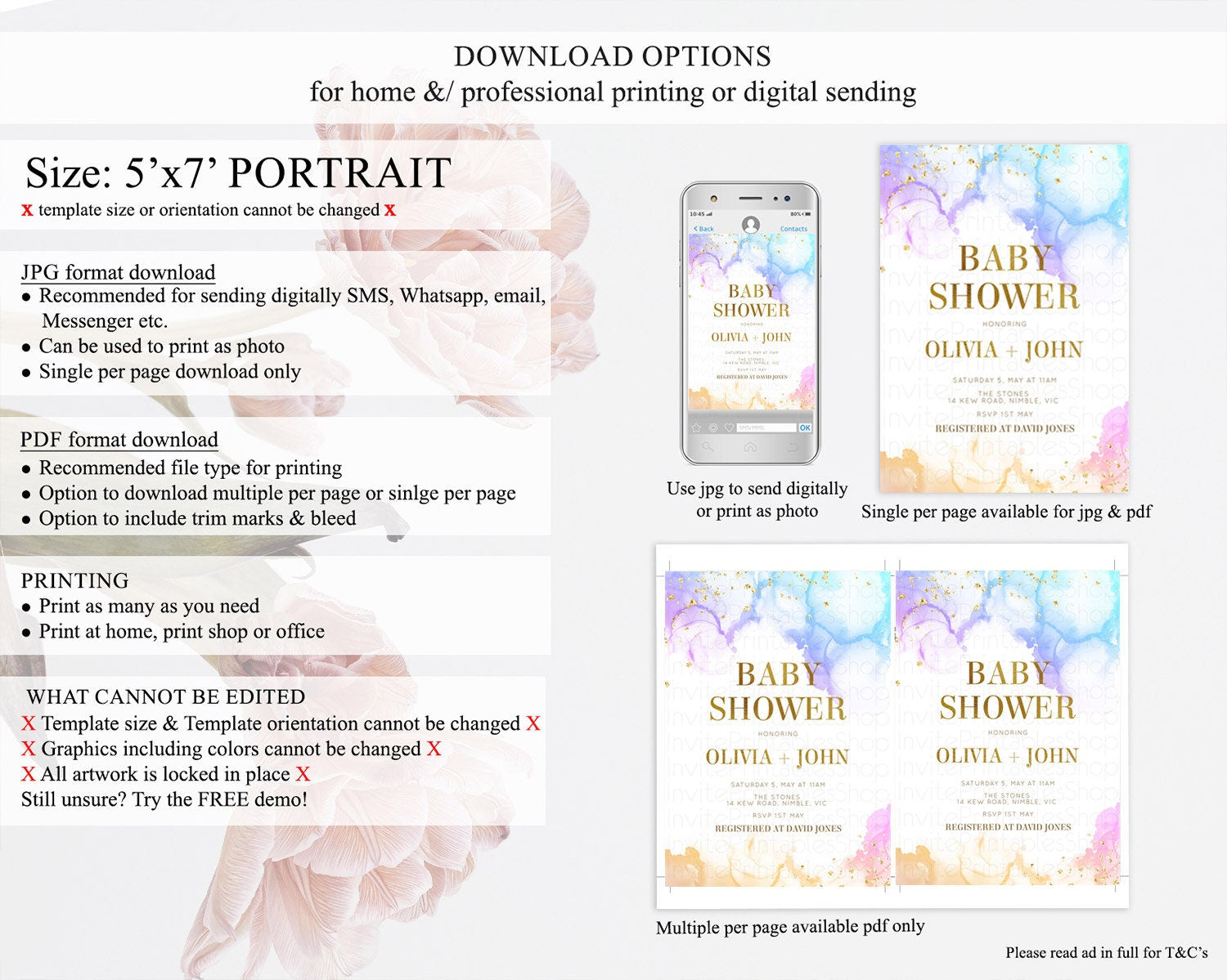 • Template size & orientation cannot be changed. Please use the demo link to confirm this product suits your needs.