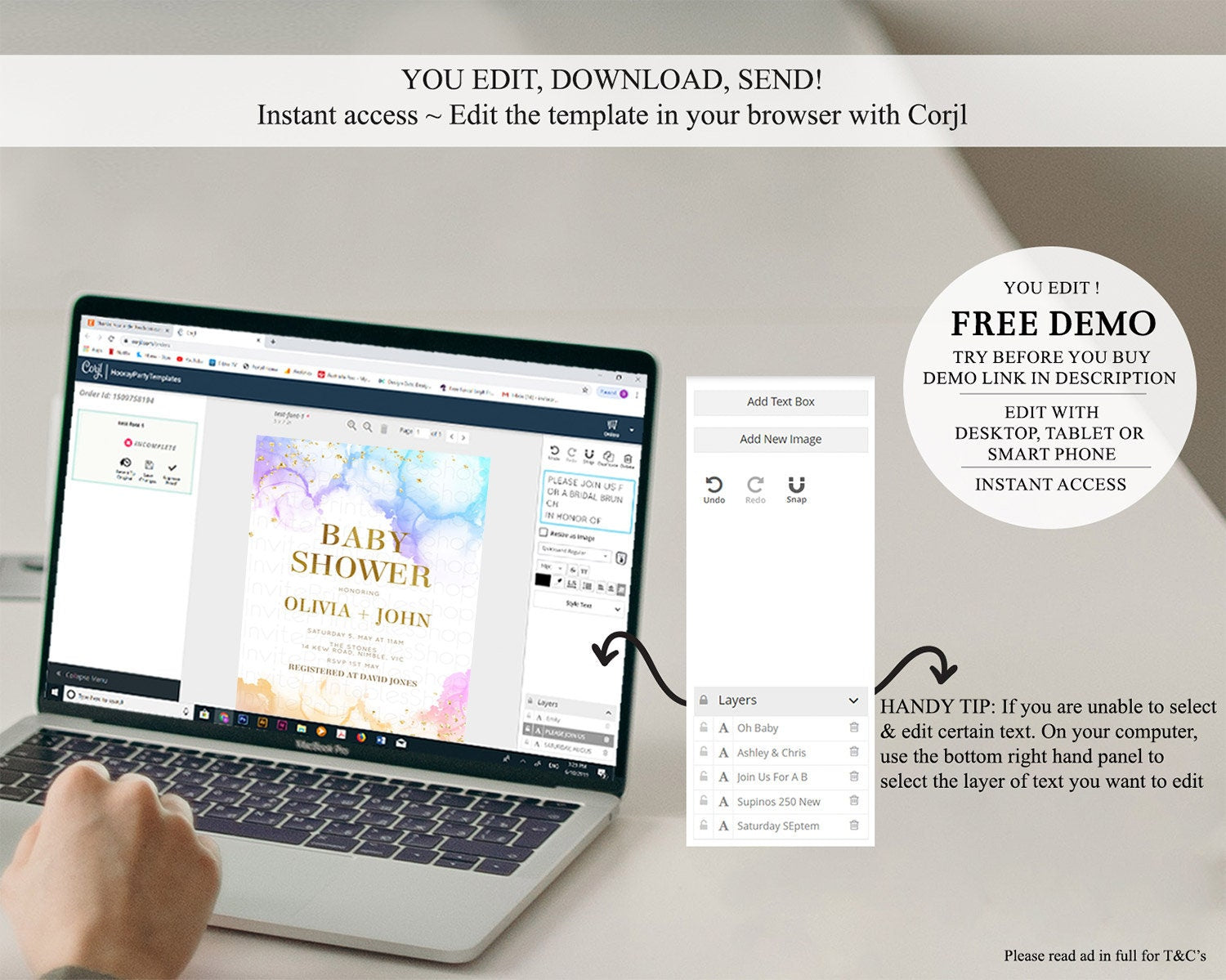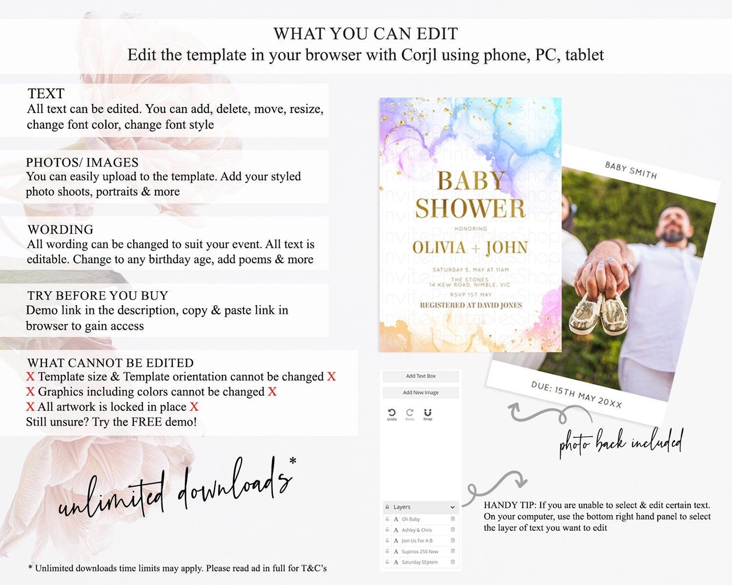 • After purchase, Corjl emails your editing link. Allow up to 15 minutes for delivery.