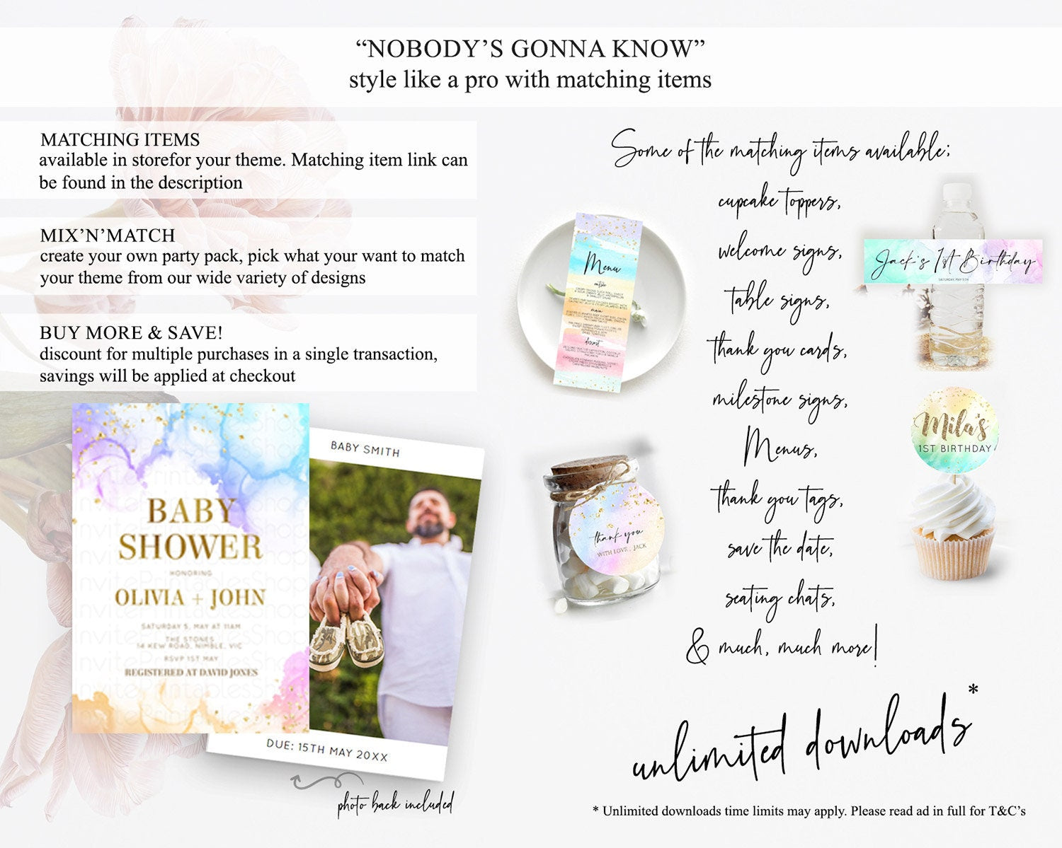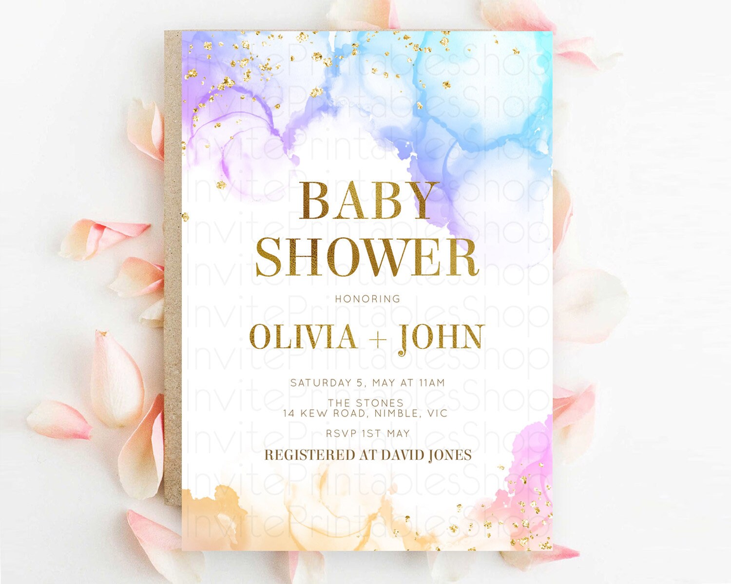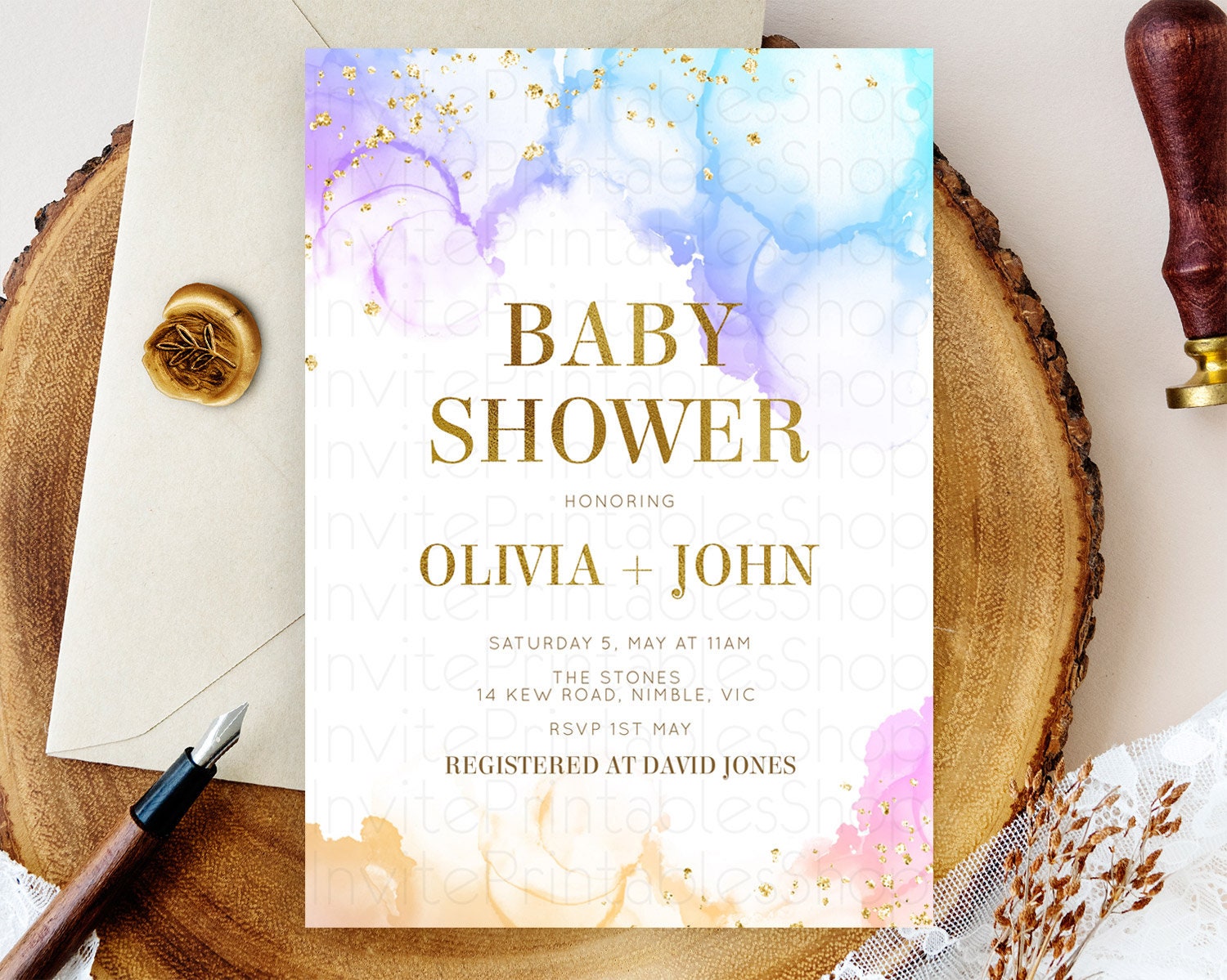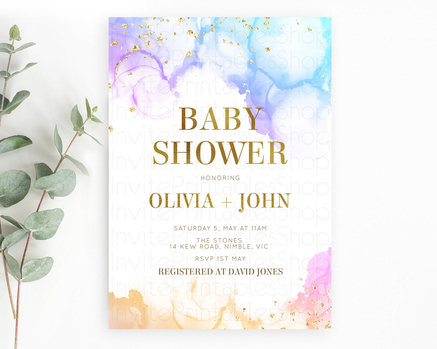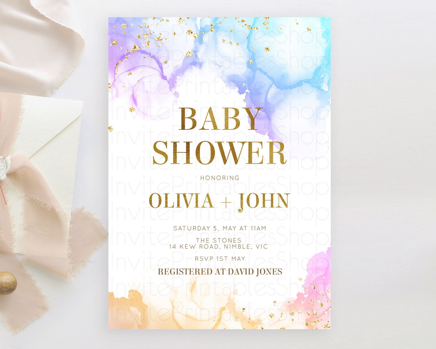 Pastel Baby Shower Invitation Rainbow Baby Shower Invitation Colorful Pastel Watercolor Invitation Gold Glitter Sprinkles Ombre D11018