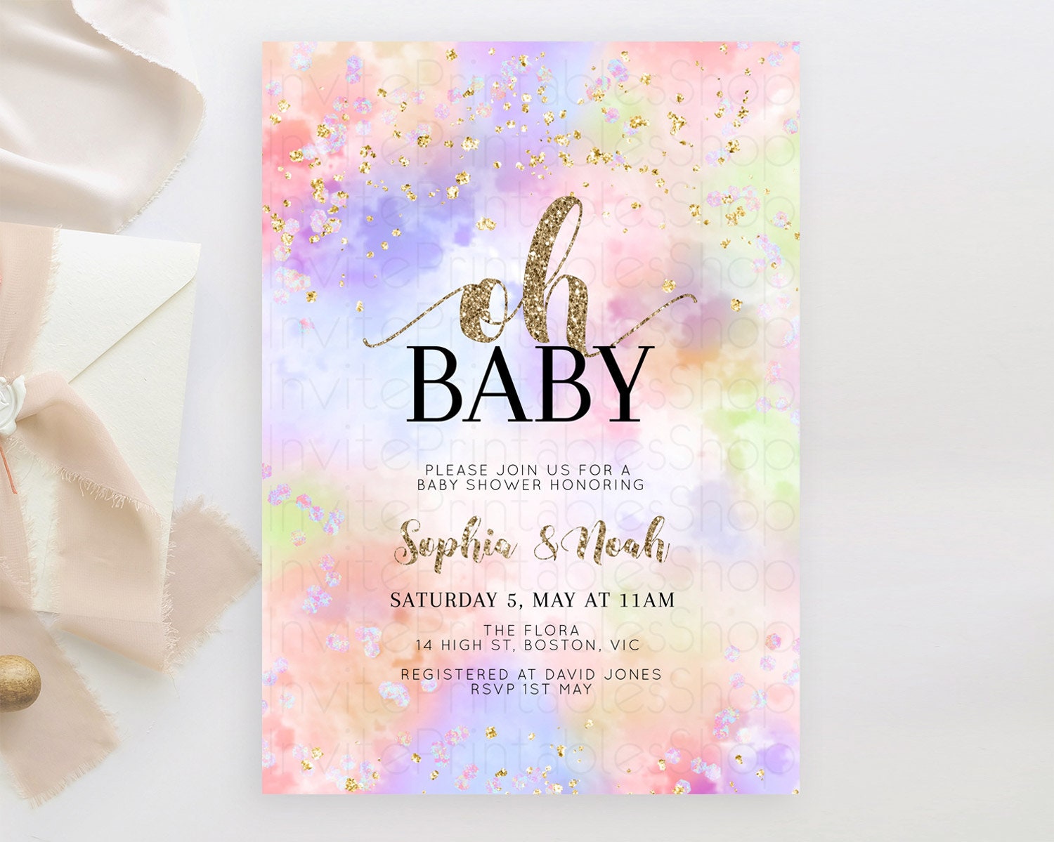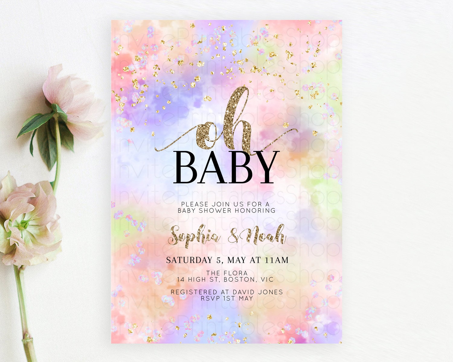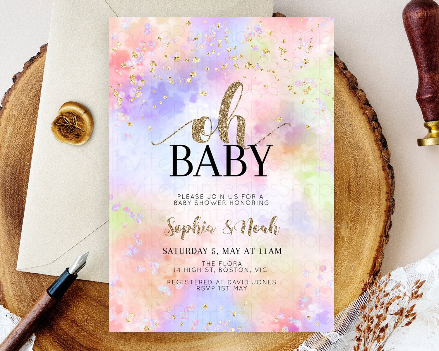 Pastel Baby Shower Invitation Rainbow Baby Shower Invitation Colorful Pastel Watercolor Invitation Gold Glitter Sprinkles Ombre D11019